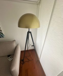 Etiquetas: buen estado, dorada, estilo trípode, lampara, pantalla, pedestal, pie