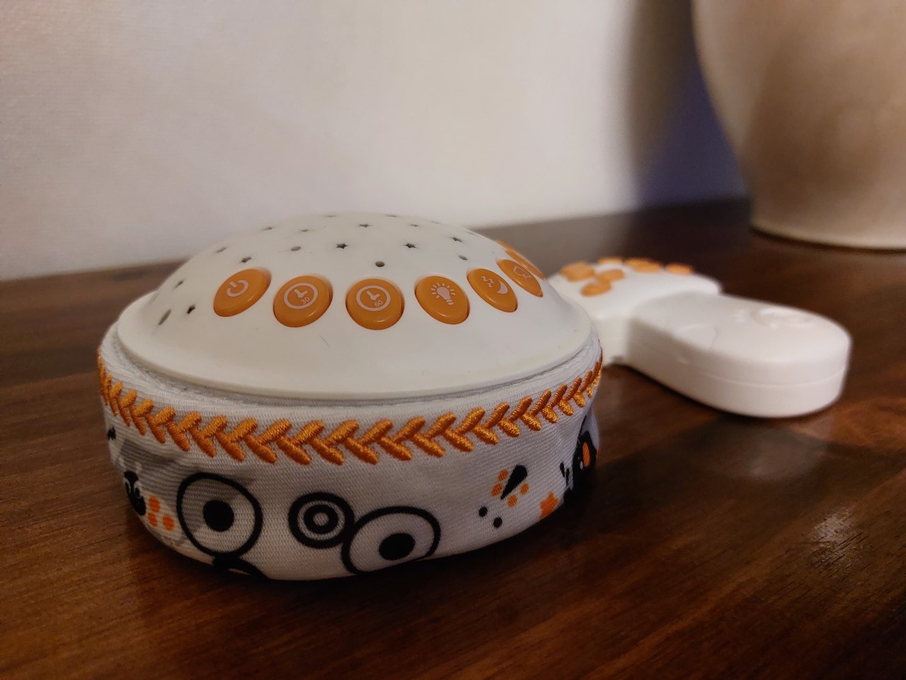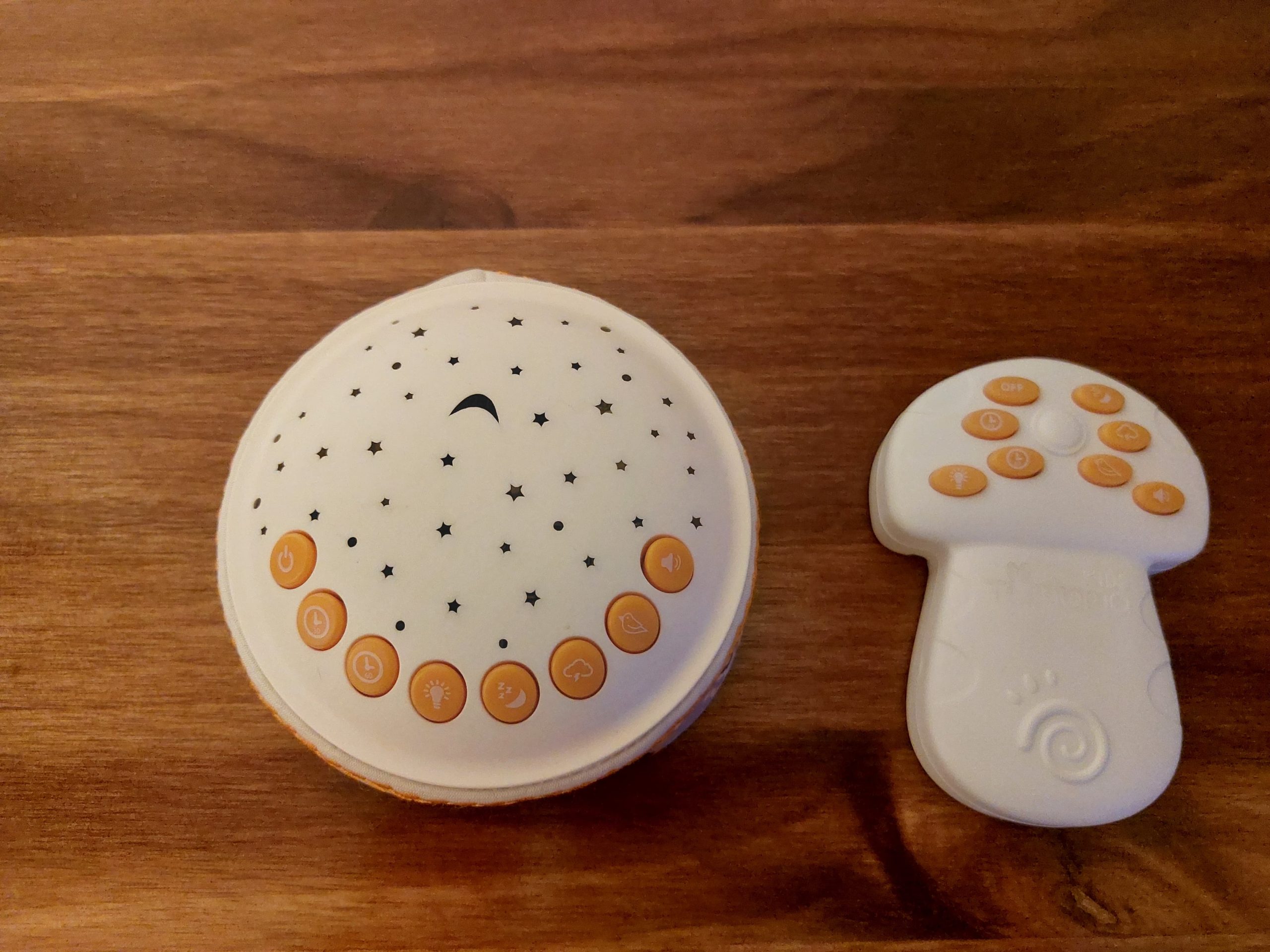 Tiene control remoto, proyecta luces y sonido blanco