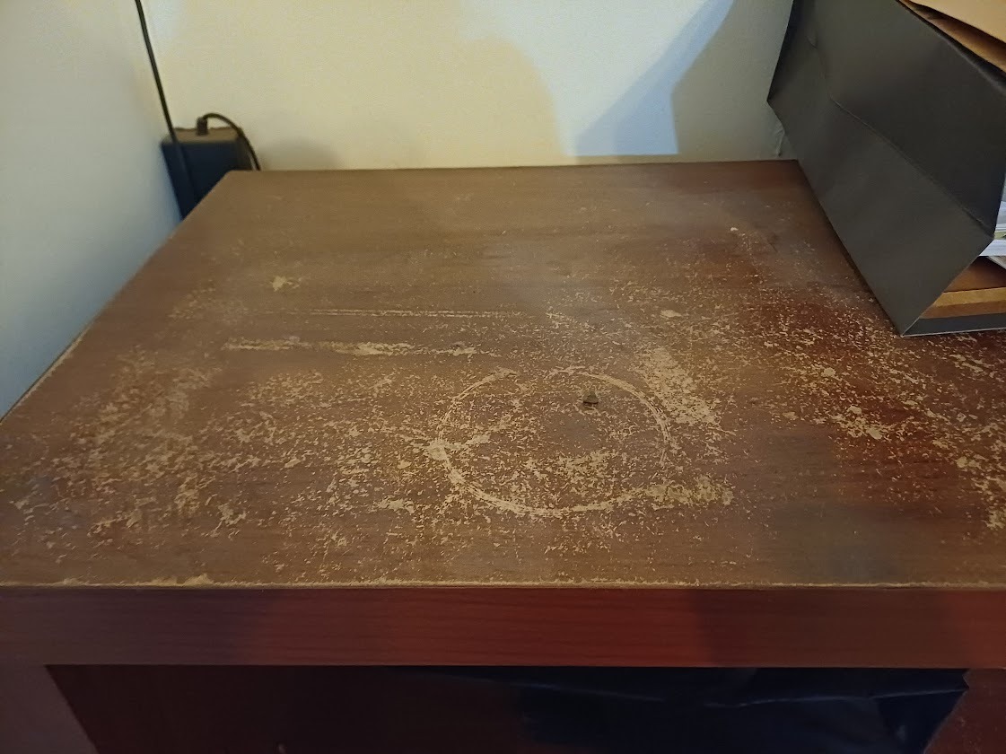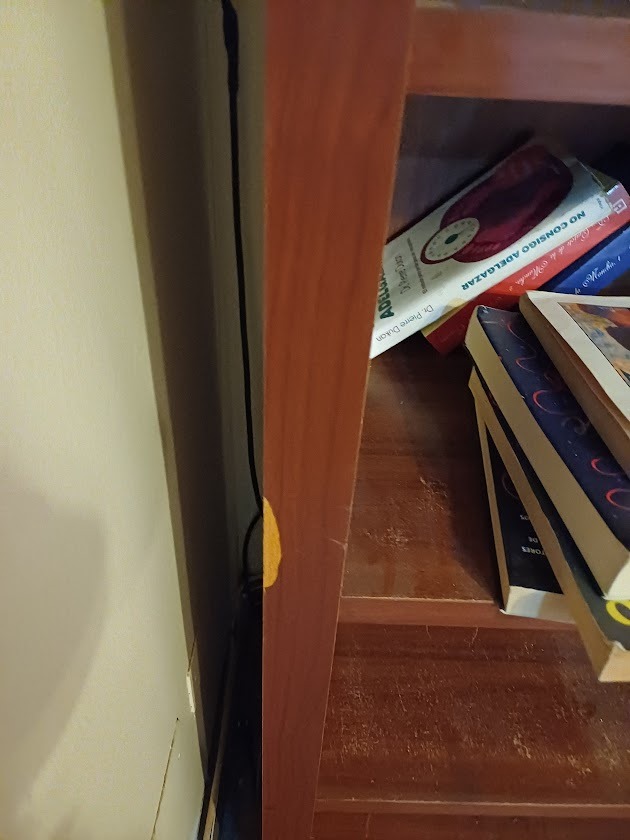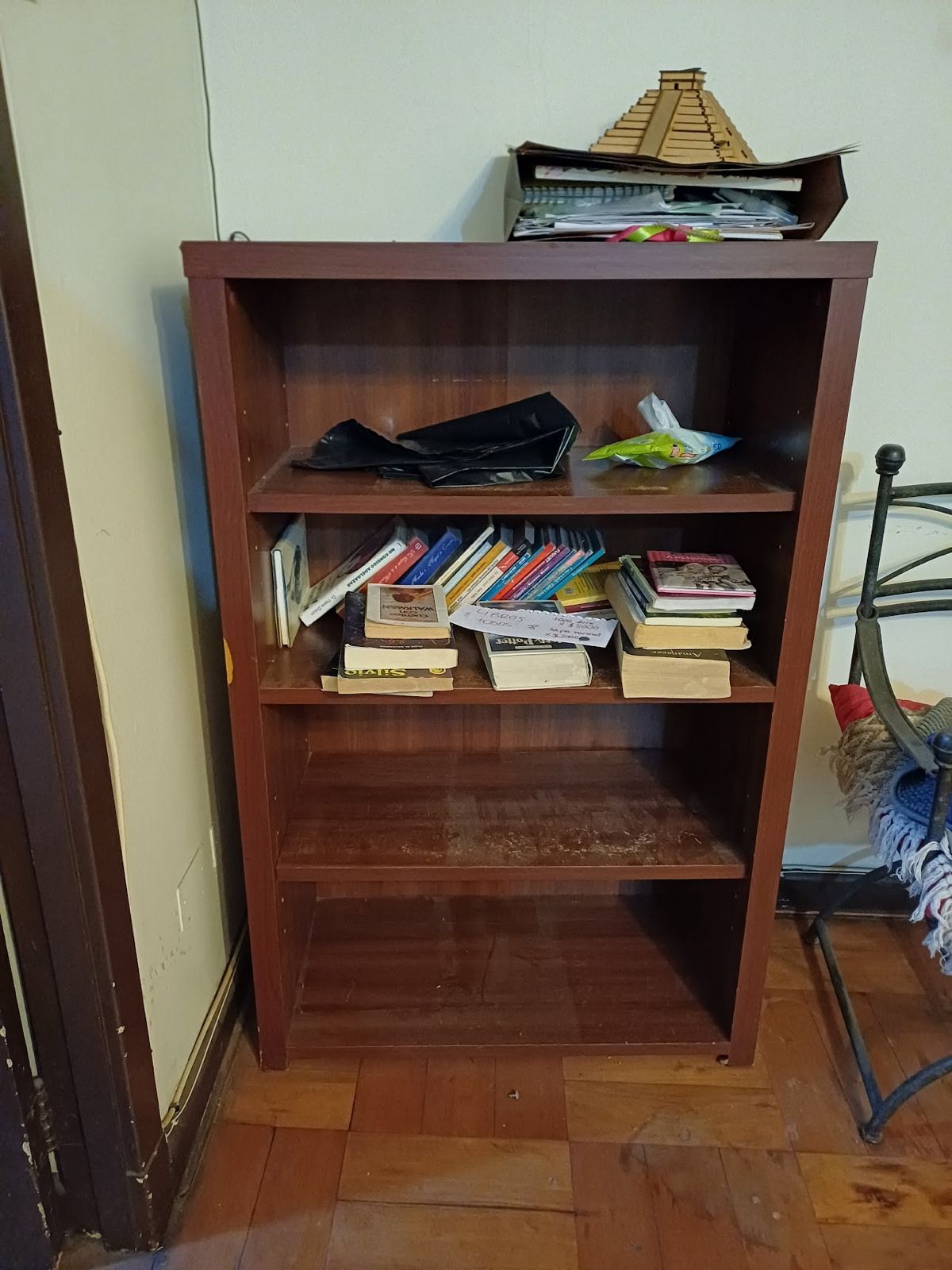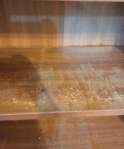 Desgaste de uso en repisas, enchape saltado en un costado.