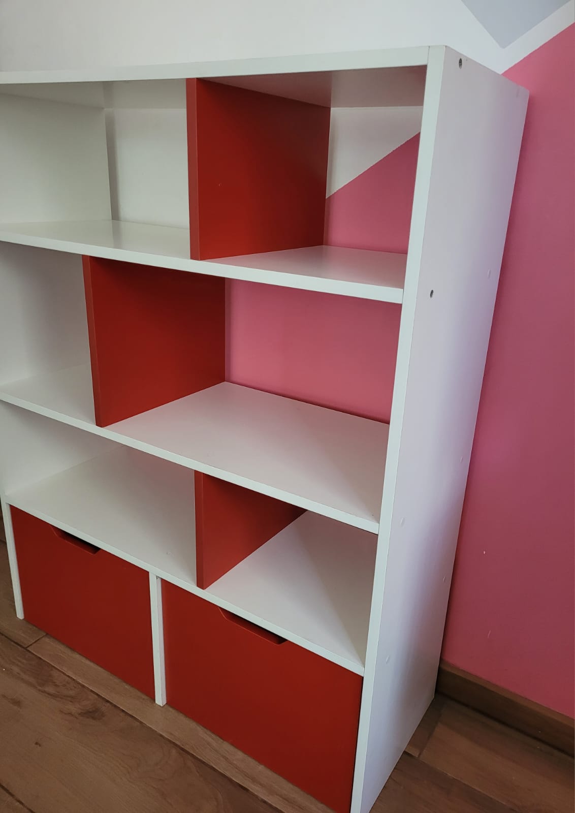 Etiquetas: buen estado, cajonera, librero, melamina, rojo