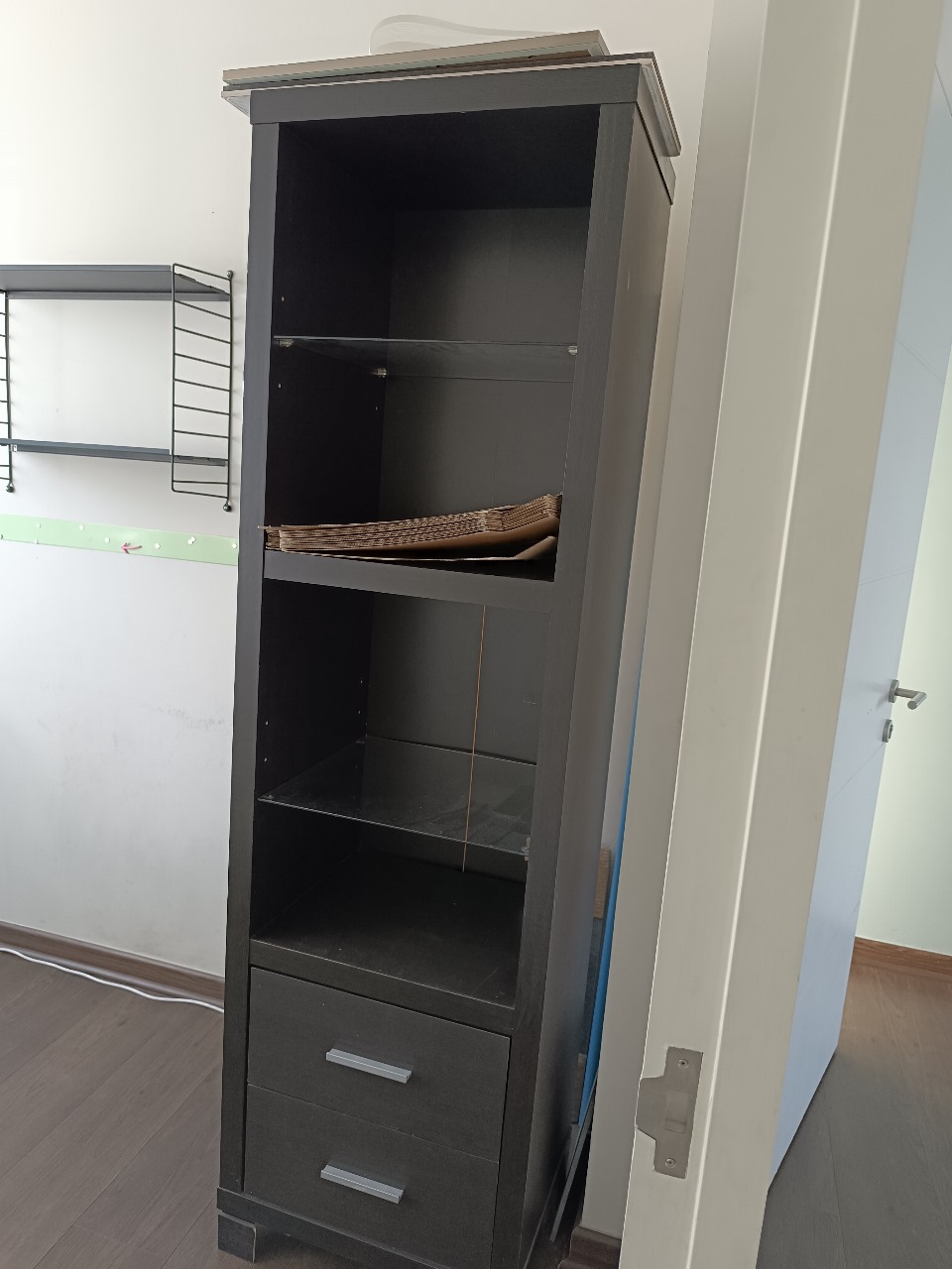 Etiquetas: dos cajones, librero, MDF, repisas, vidrio, Wenge