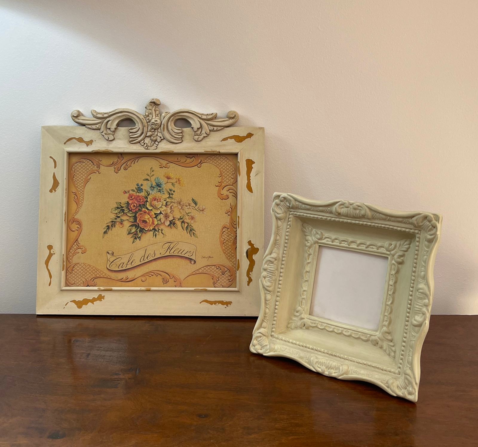 Marco de foto blanco resina + cuadro deco de madera