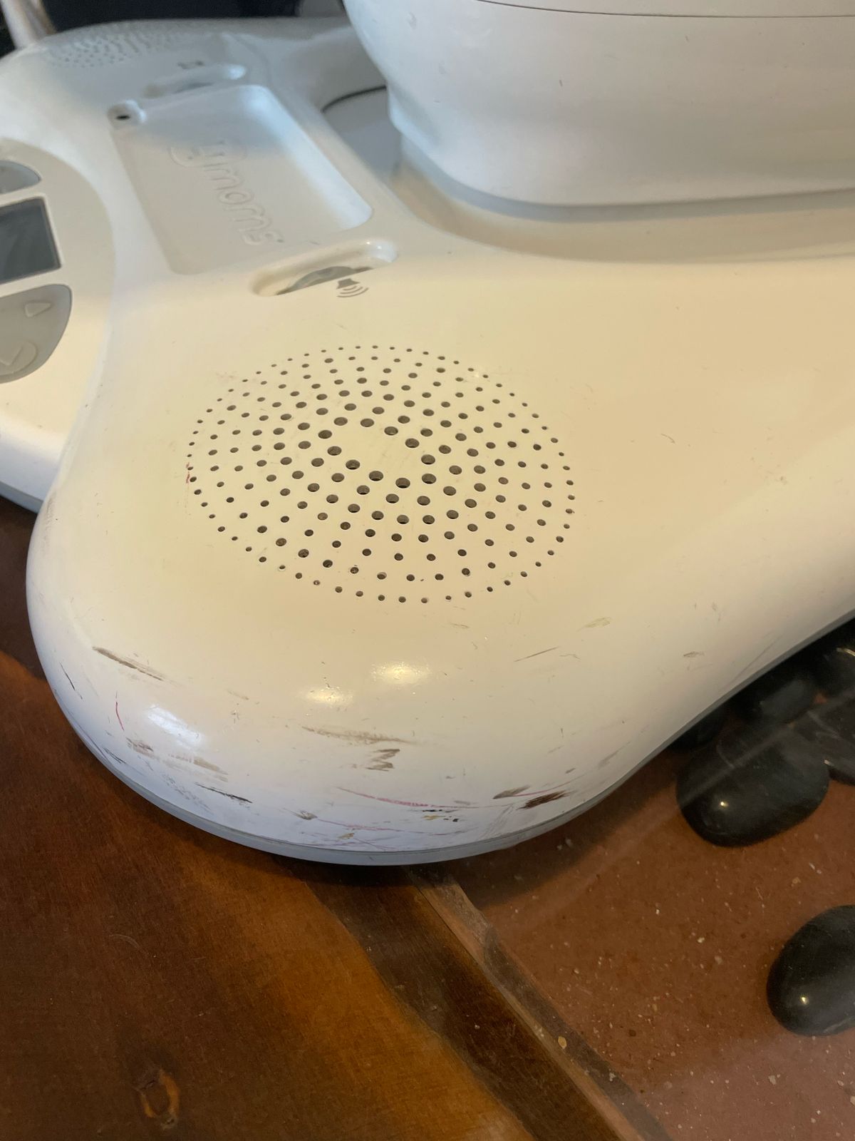 Detalle rayitas en la base por movimiento de mueble, y pequeña mancha en la funda que se aprecia en la fotografía