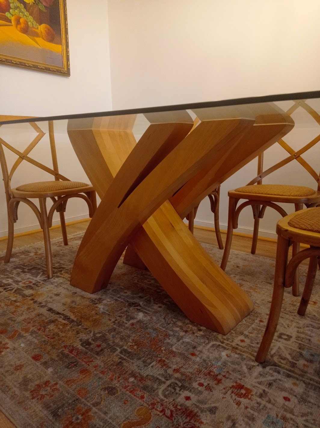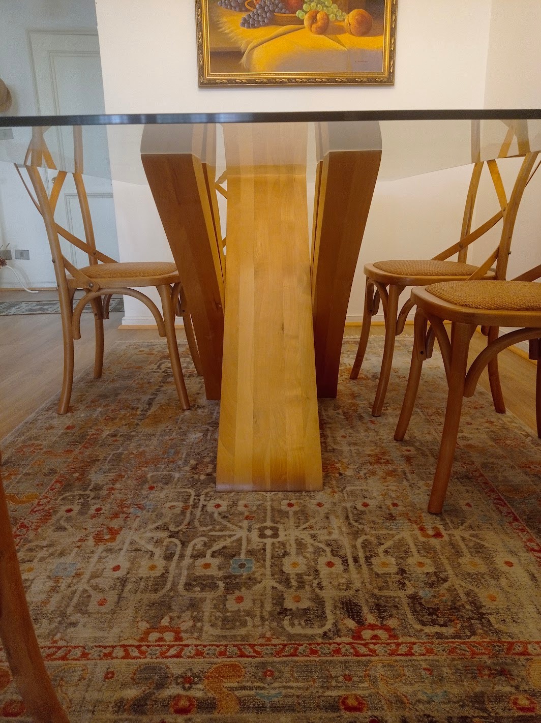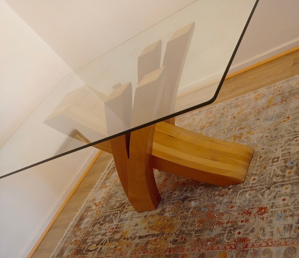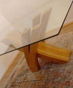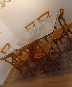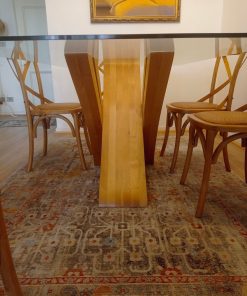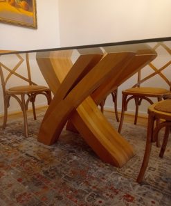 Mesa comedor vidrio 1 cm grosor y base madera lingue