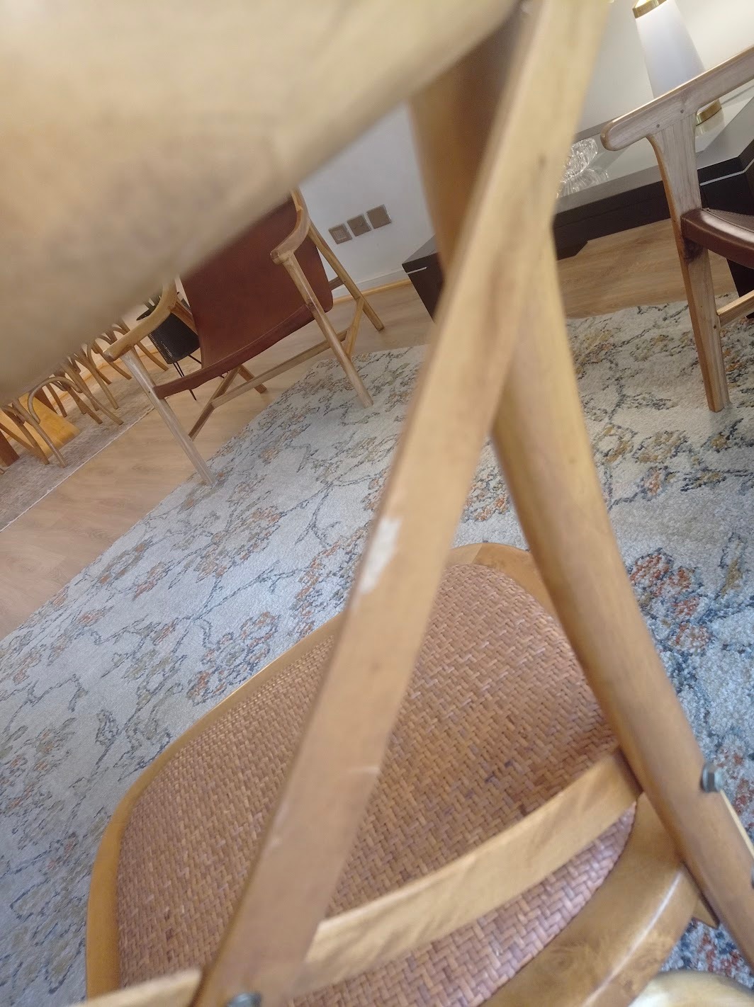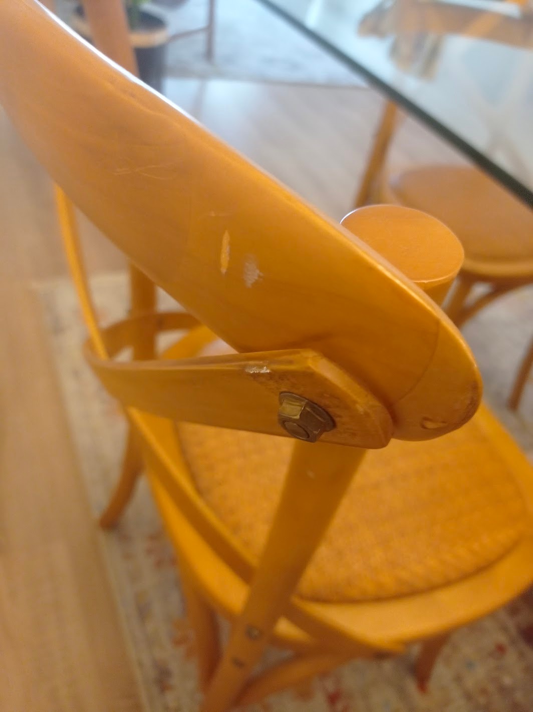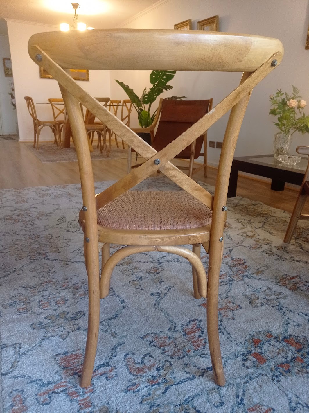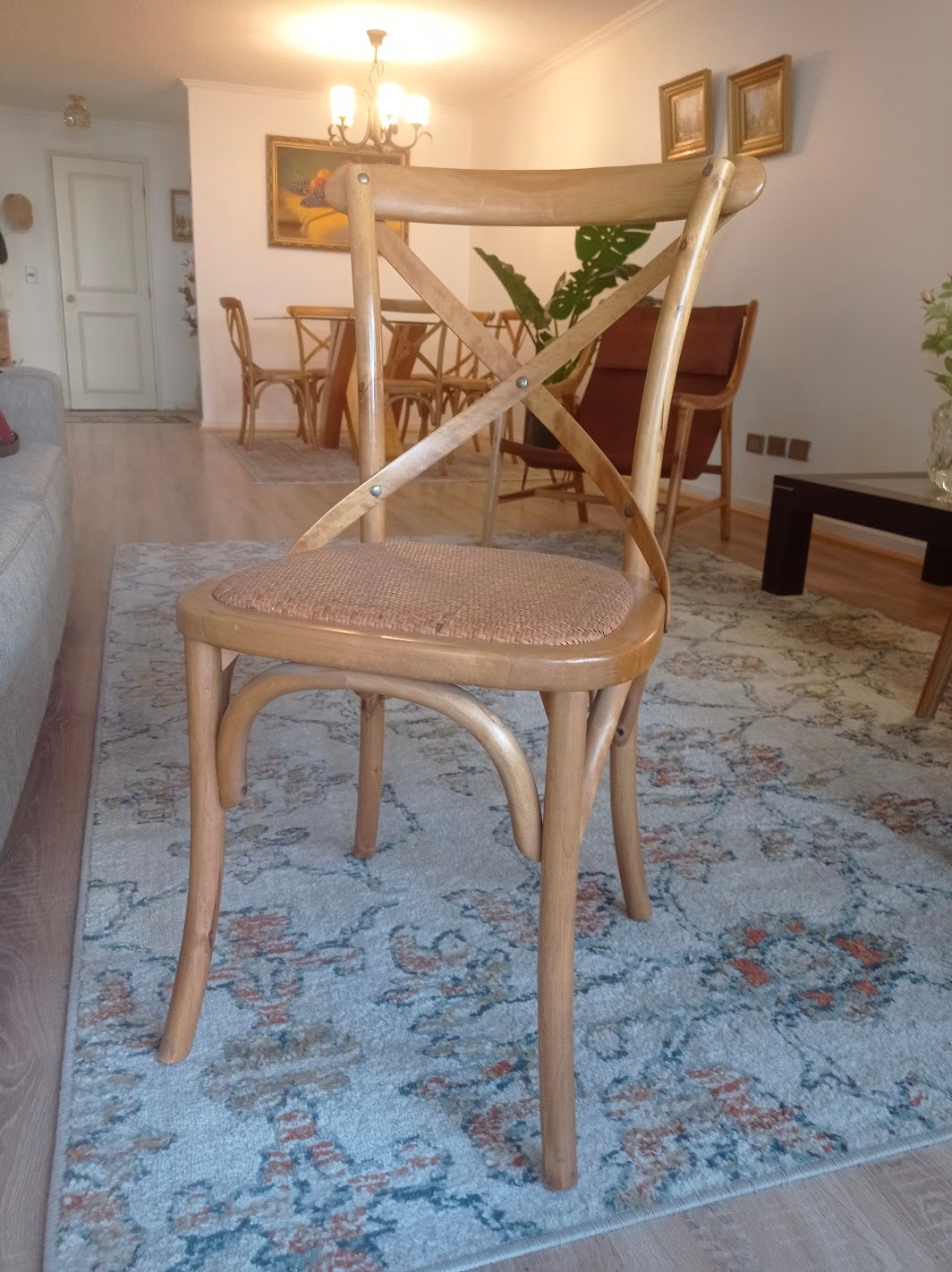 Mesa comedor vidrio 1 cm grosor y base madera lingue