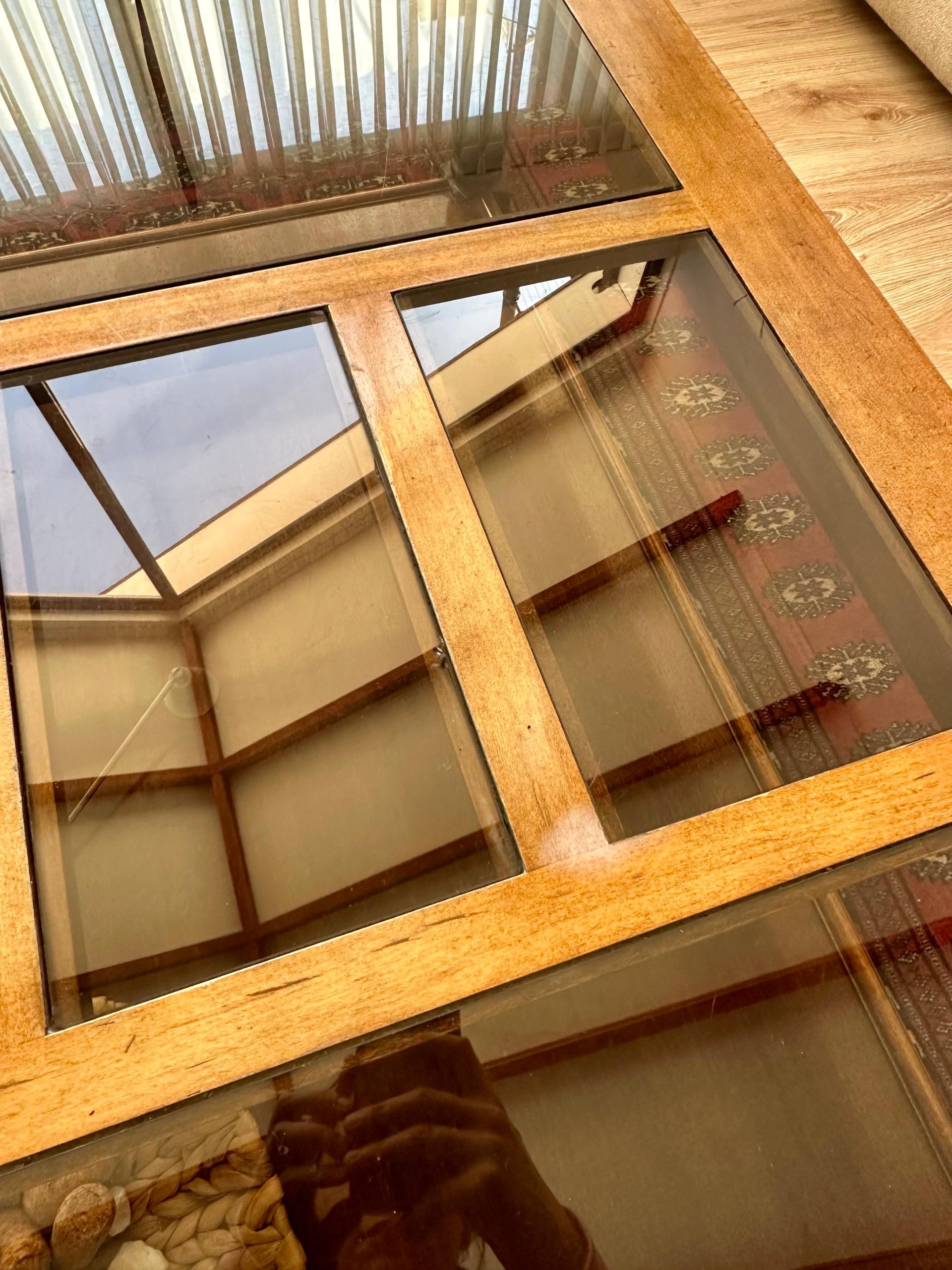 Mesa de centro larga madera y vidrio