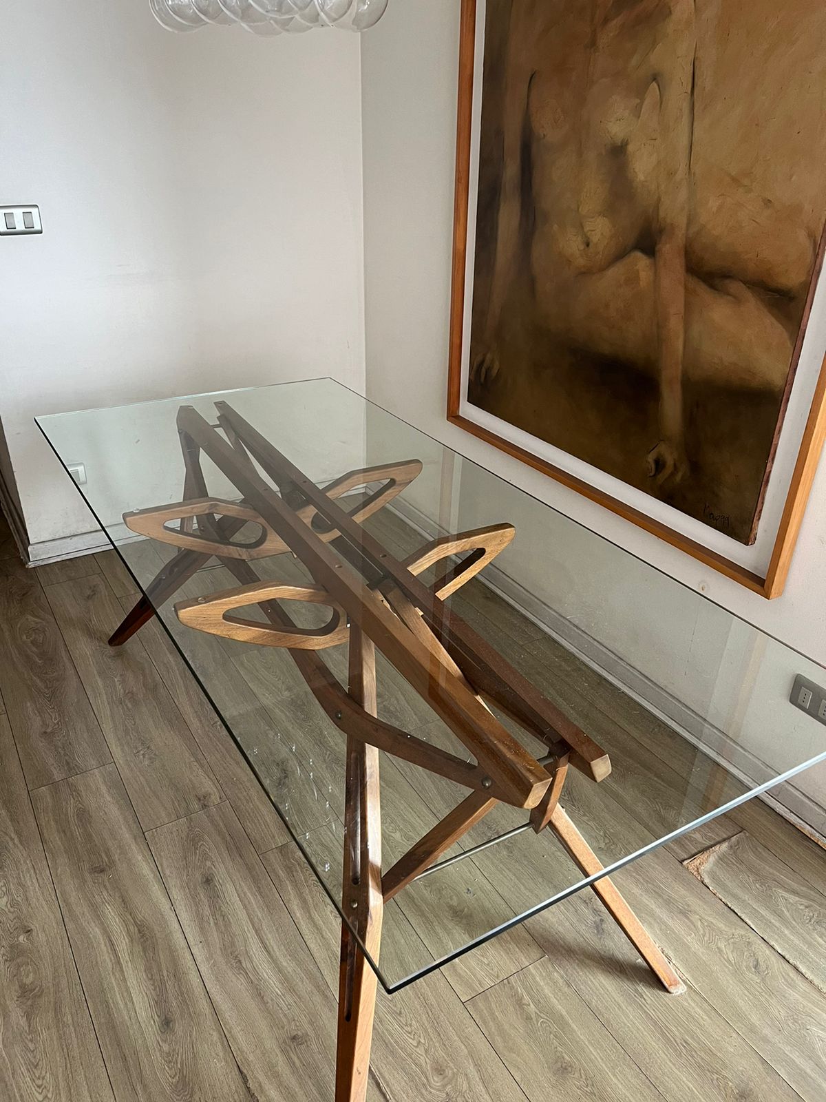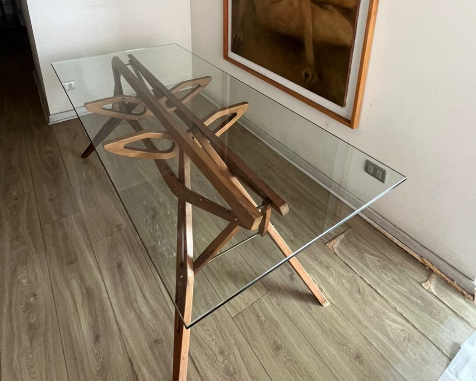 Madera de nogal americano, vidrio templado de 15 mm grosor