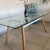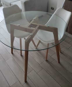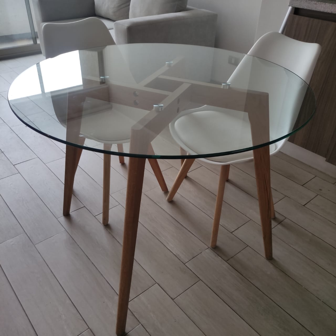 Juego comedor de madera de ciprés y cubierta de cristal 6 sillas