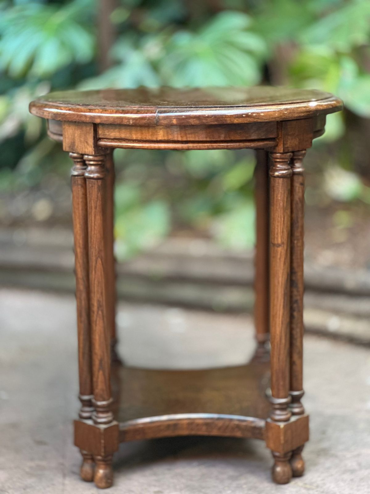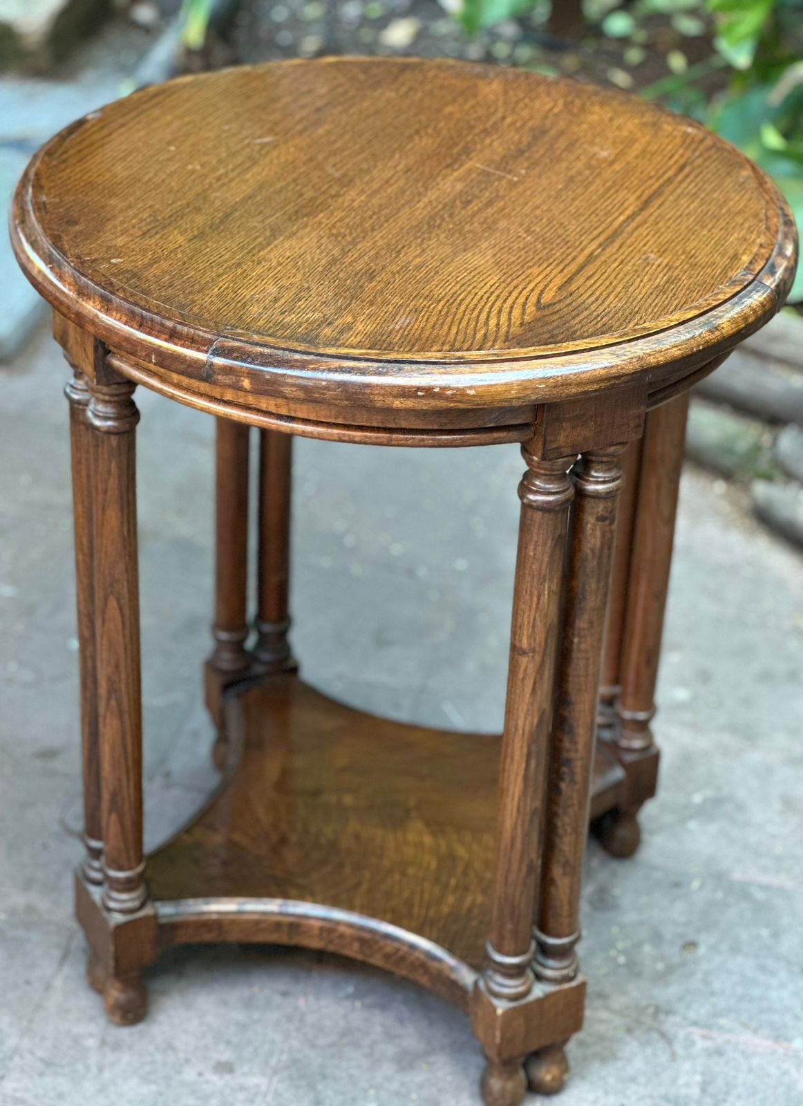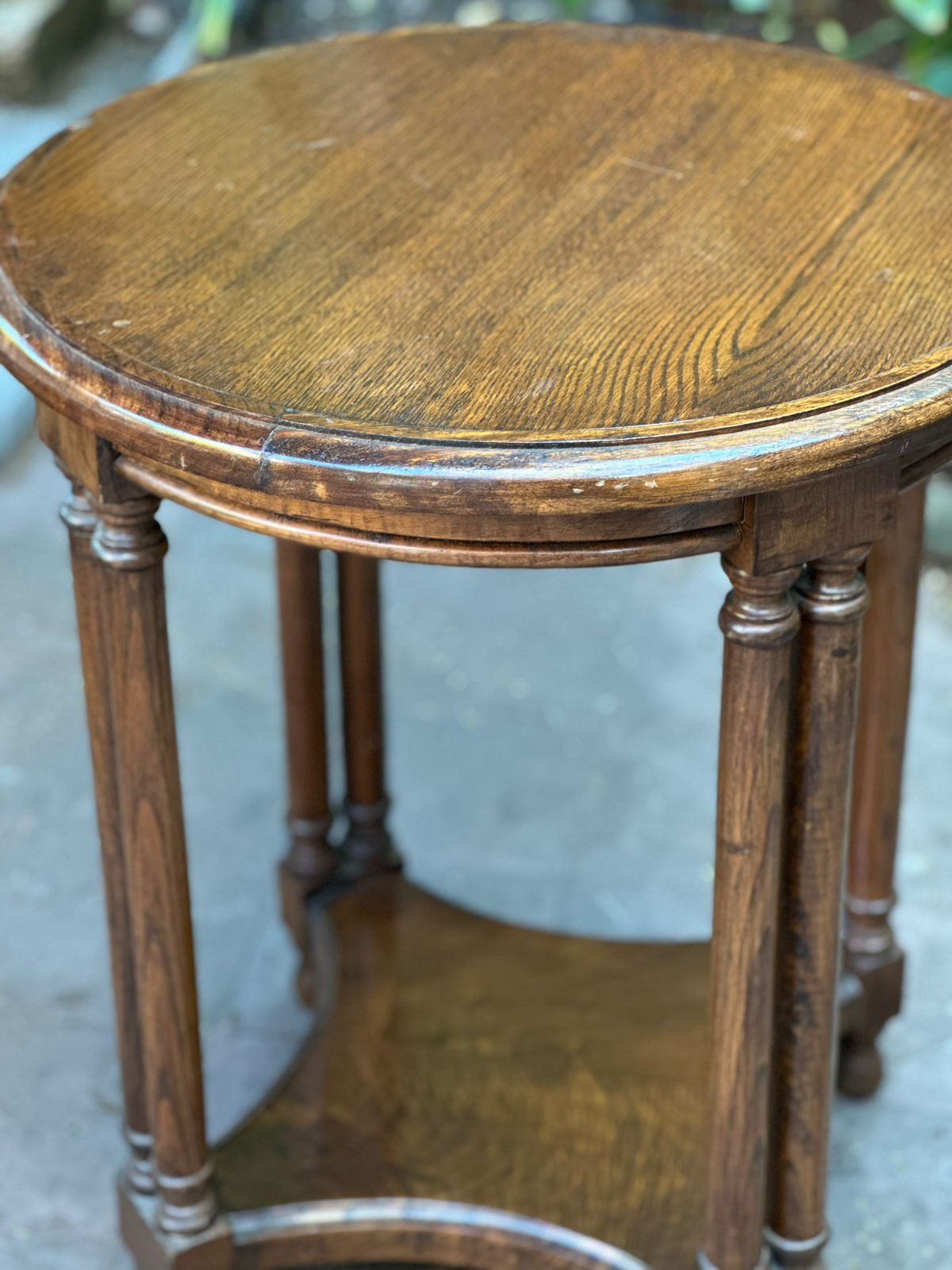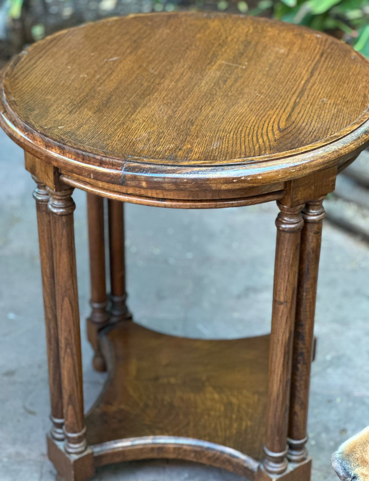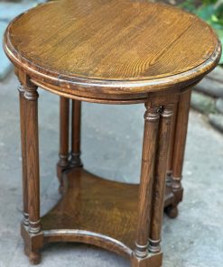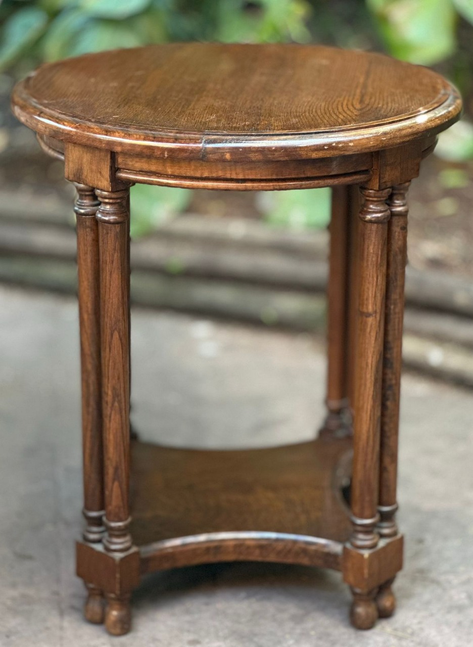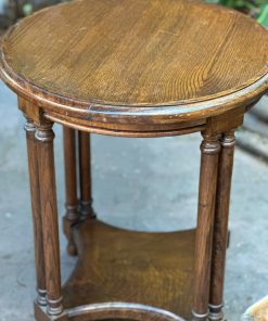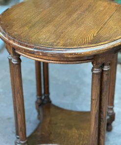 Mesa lateral redonda de madera antigua