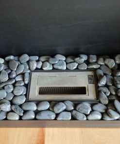 Tienda Natural Warm, madera pintado negro, iluminación led, escritorio, estufa etanol incorporada, palillaje en TV.