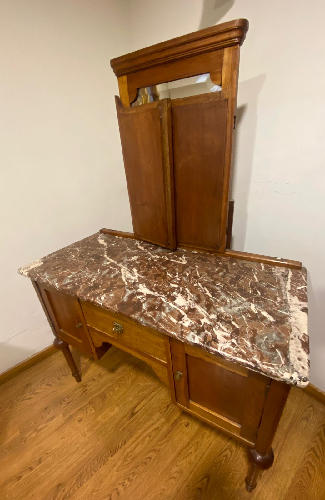 Cubierta de mármol y espejo abatible, madera noble