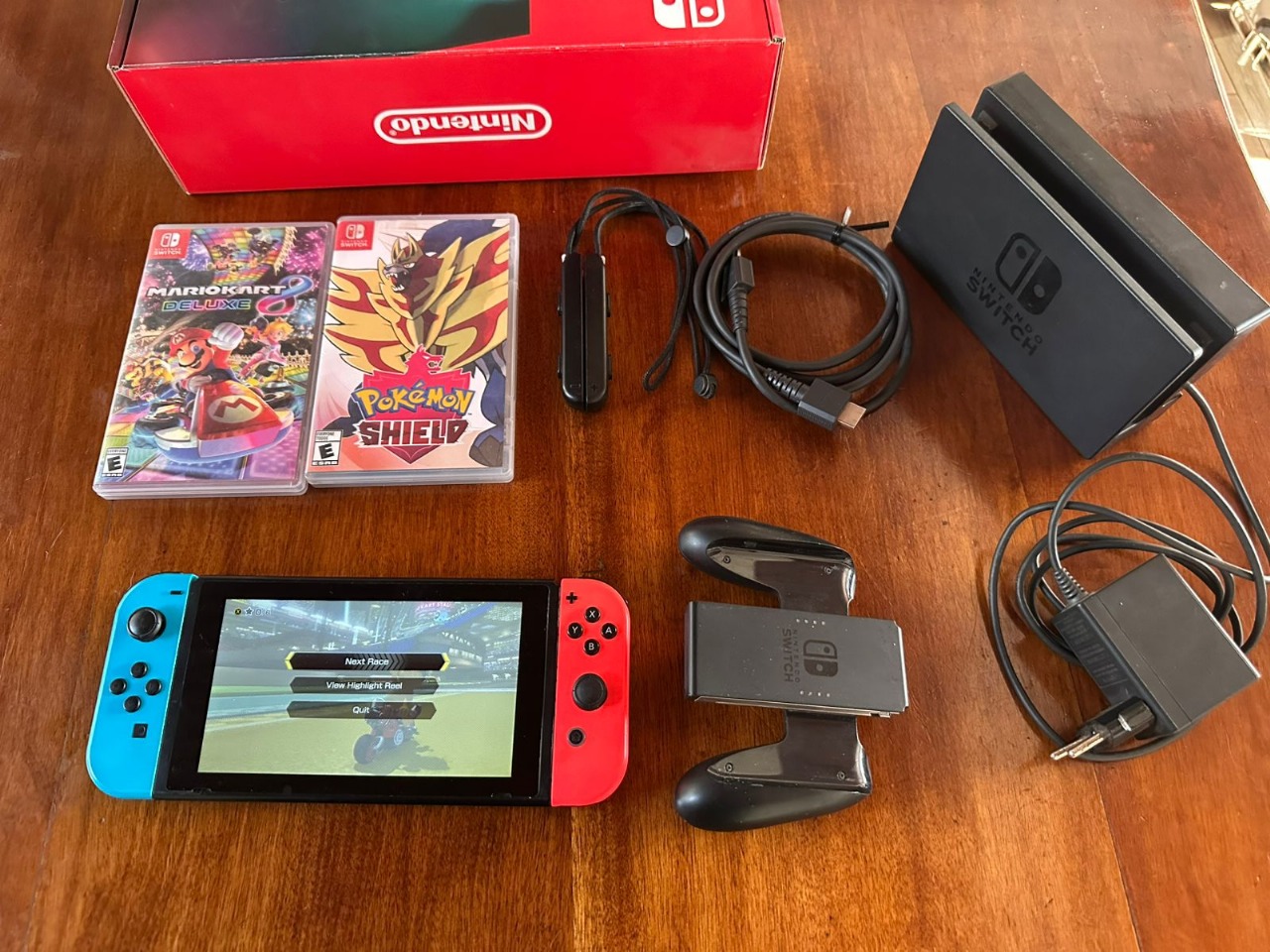 Solo 2 usos, incluye caja original, componentes y juegos Mario kart 8 y Pokémon Shield