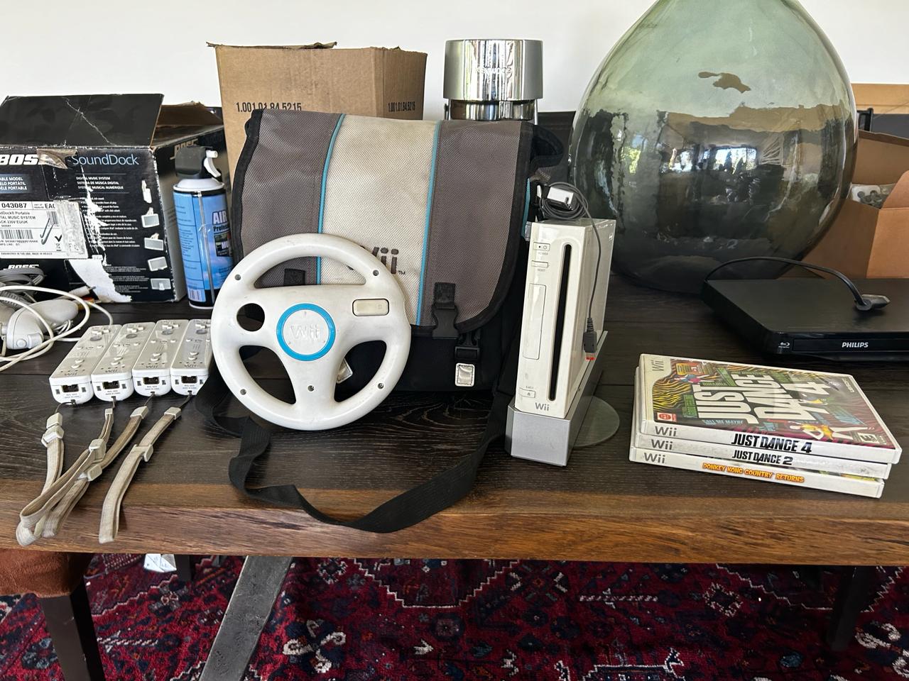 Etiquetas: 4 controles, accesorios, bolso de transporte, juegos, nintendo, volante, wii