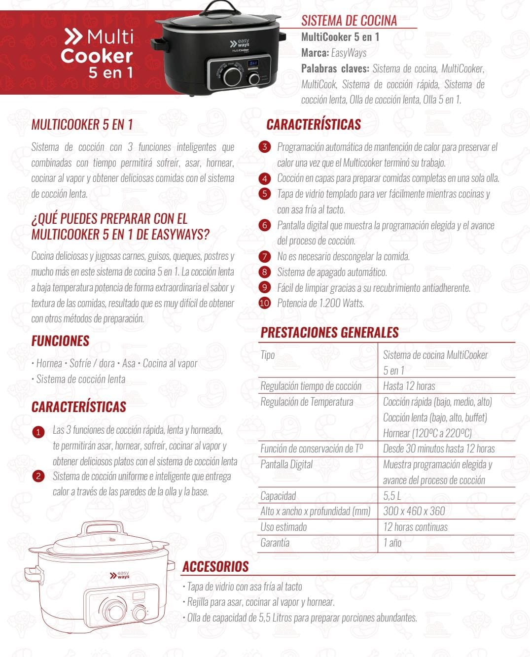 Olla multicooker 5 en 1 Easyways 5,5 Lts