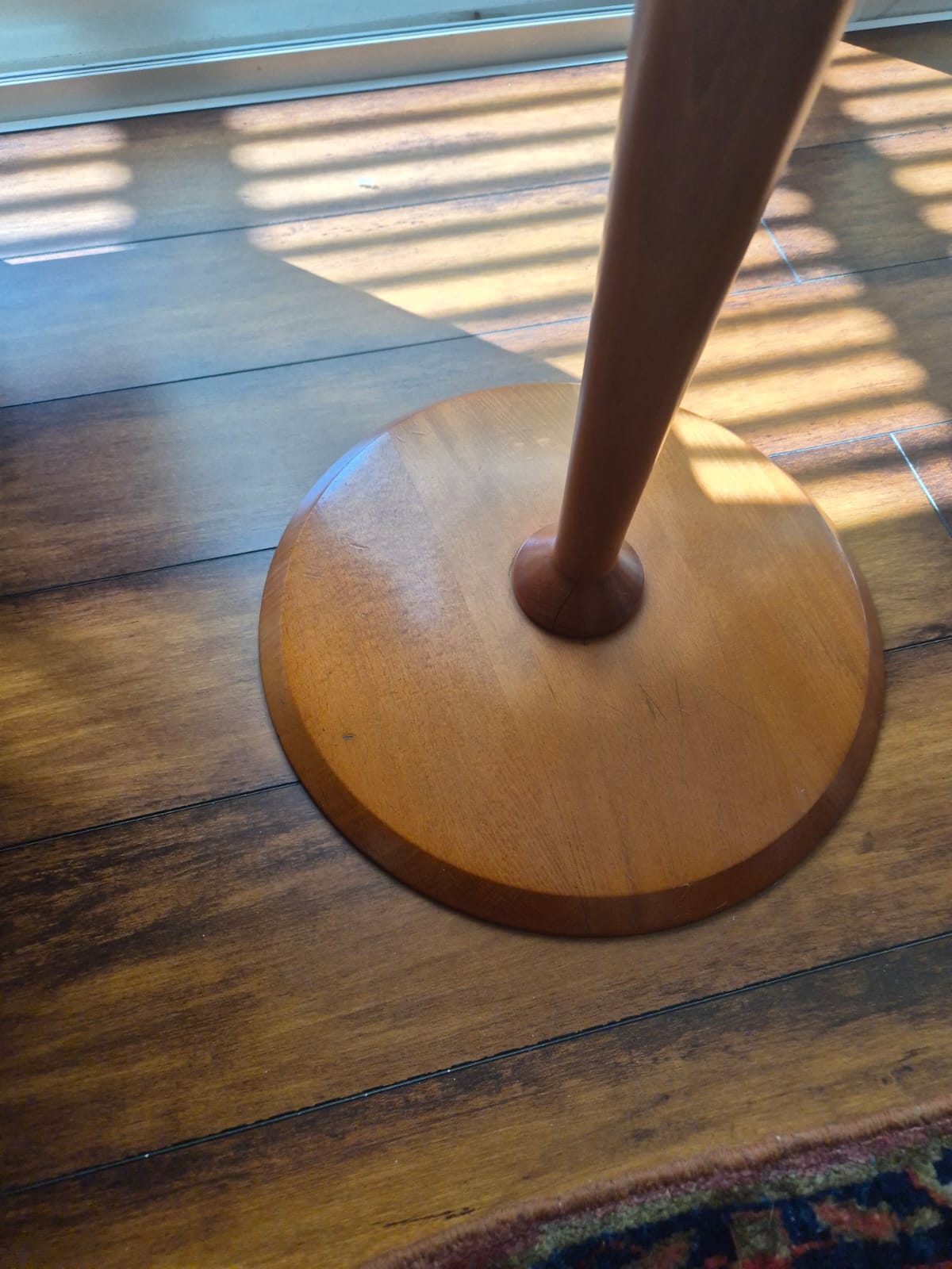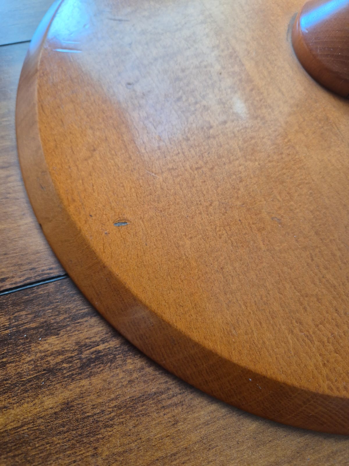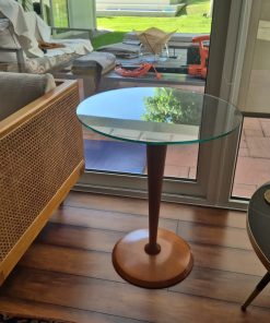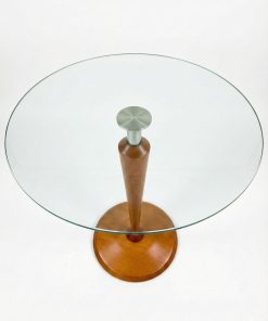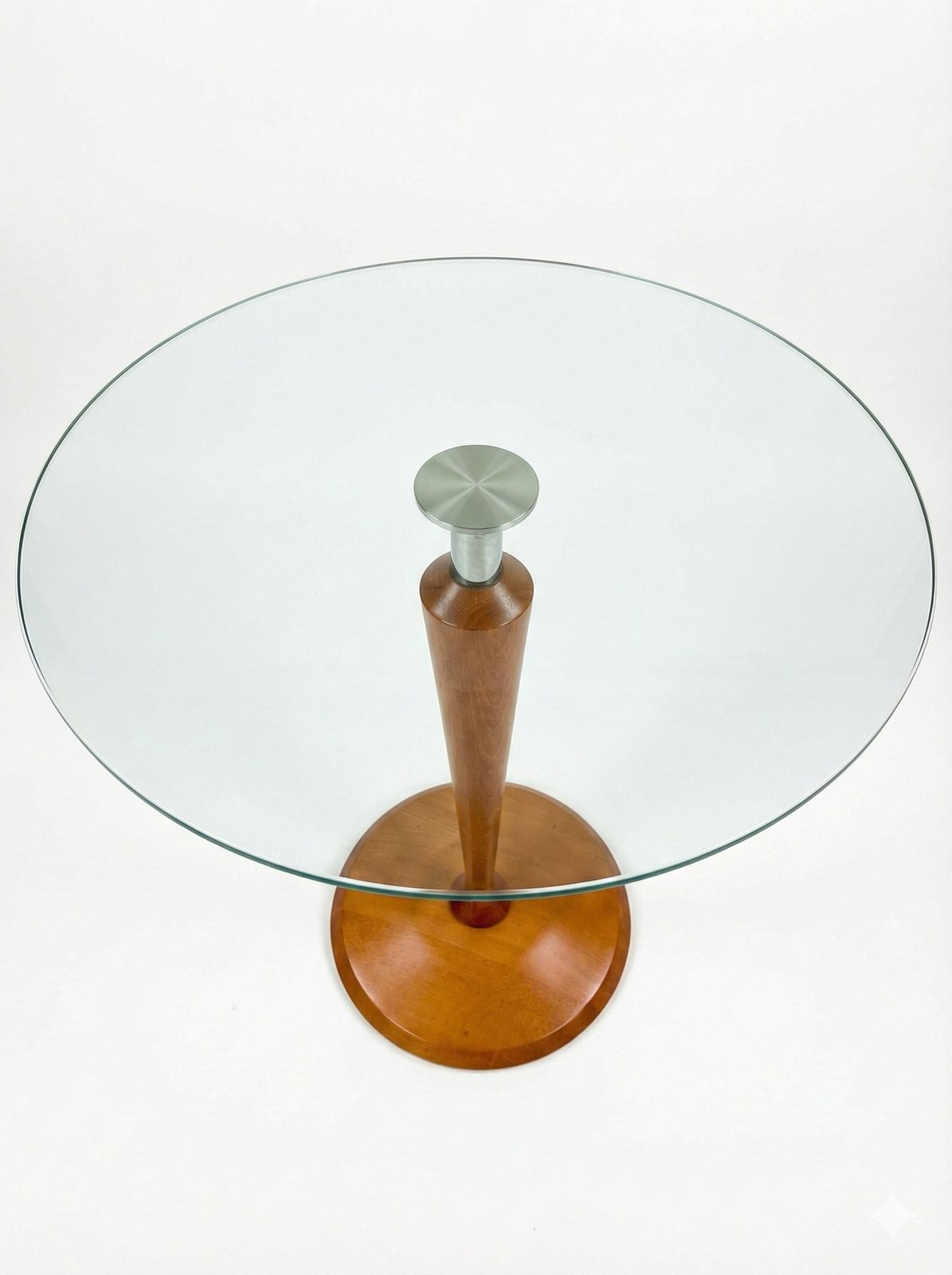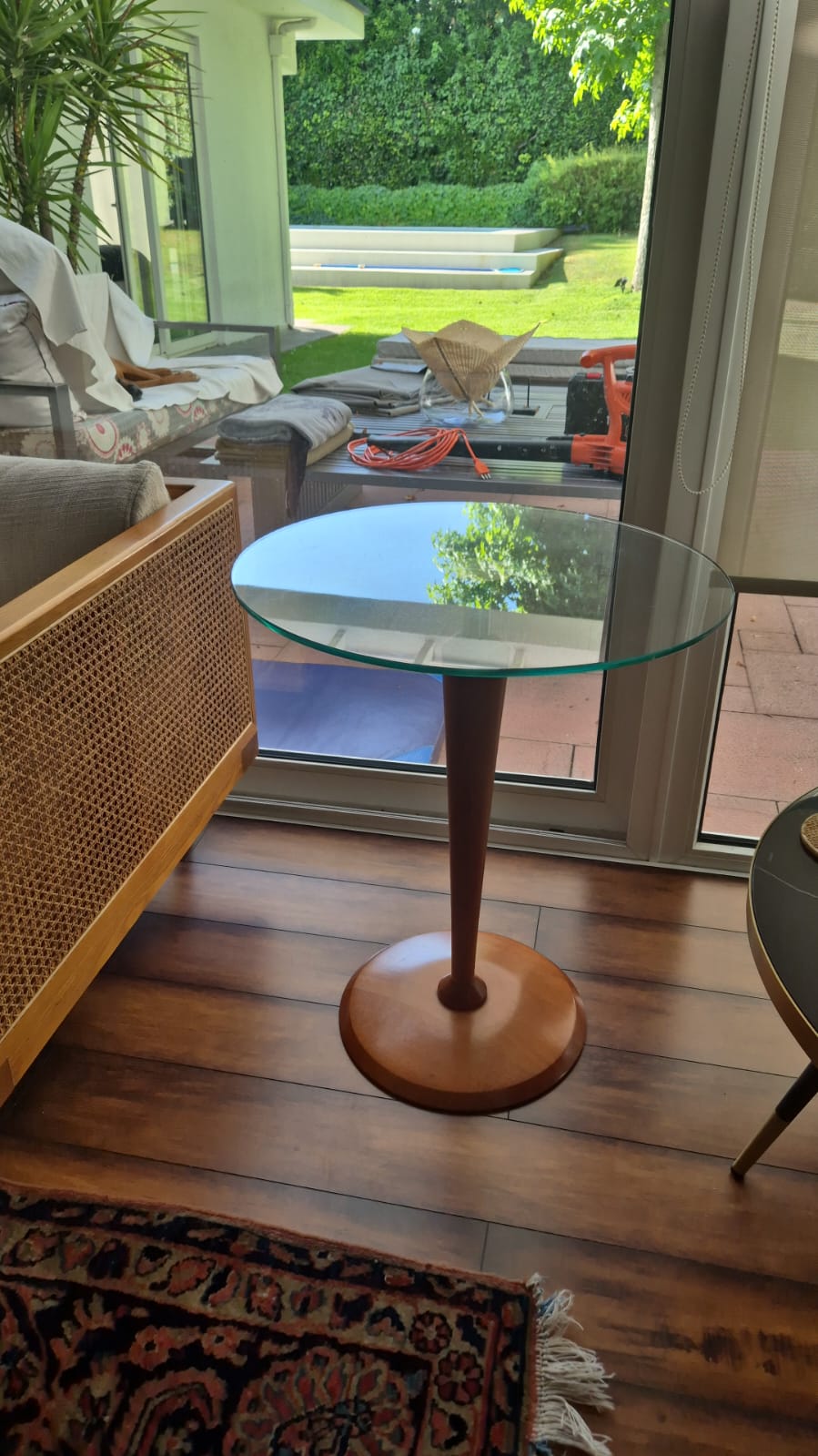 Cubierta de vidrio templado, base de acero y madera de haya color ámbar