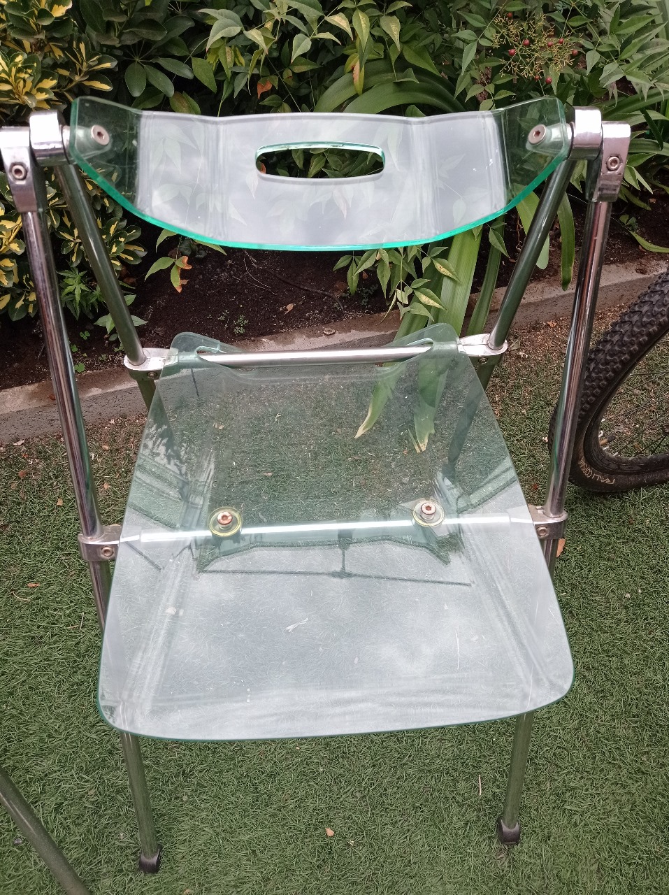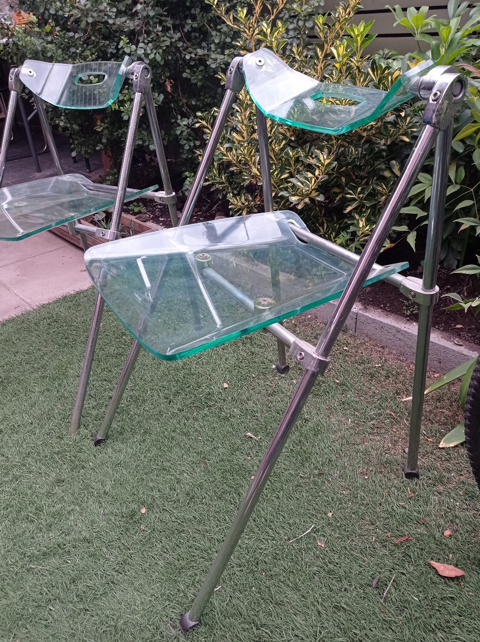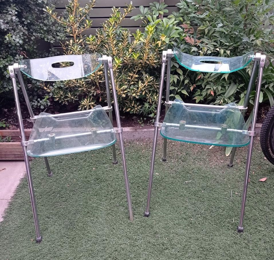 Par de sillas de acrílico y metal plegables