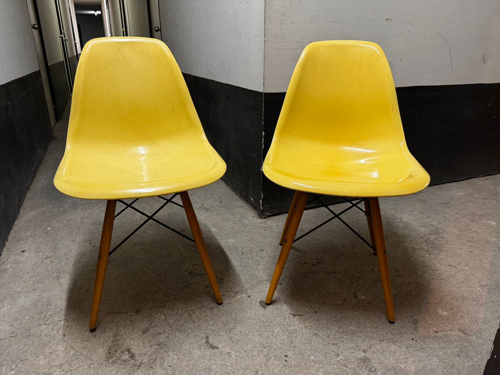 Par de sillas Eames amarillas