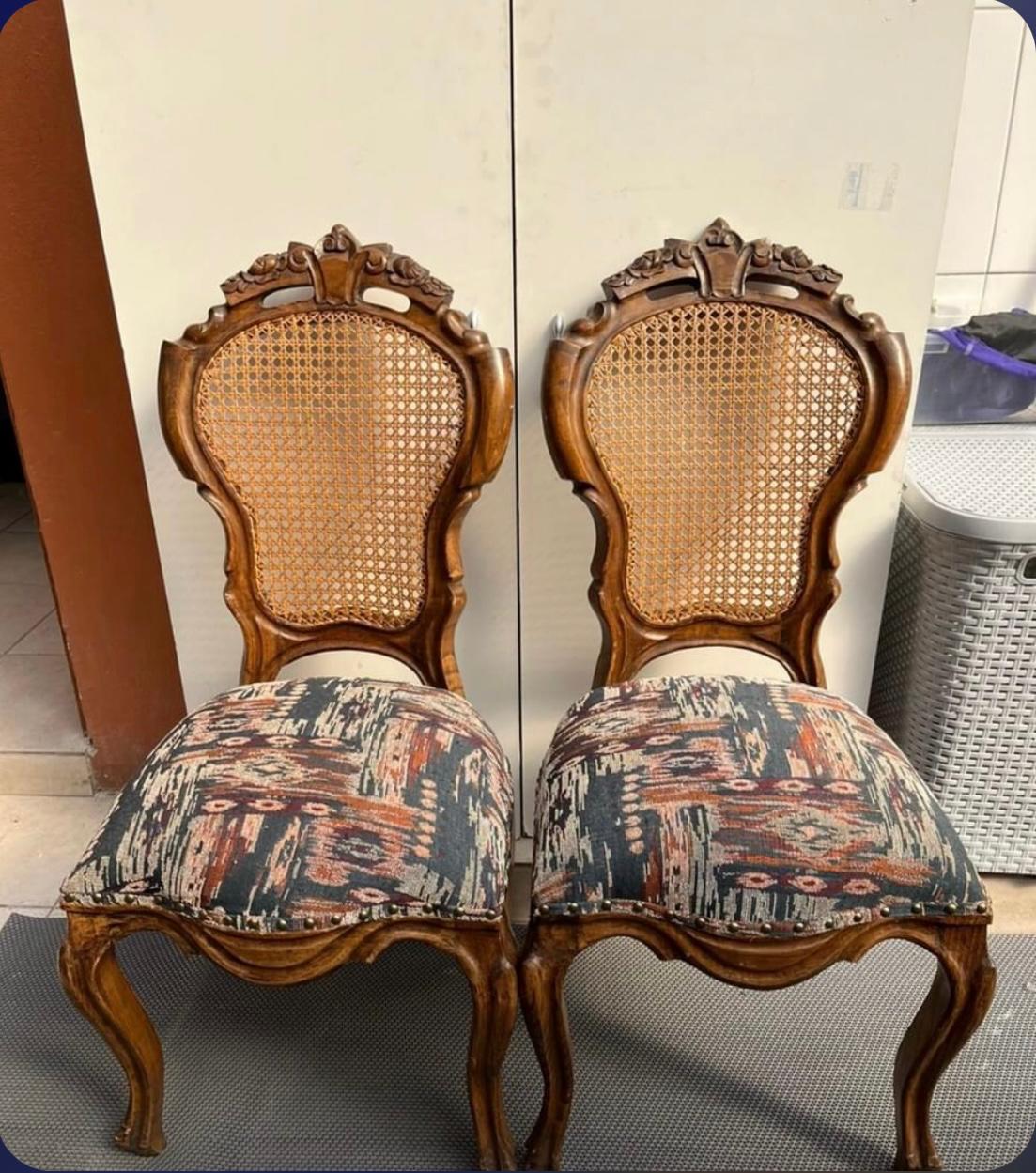 Etiquetas: muebles vintage, muebles-de-madera, Par de sillas enjuncadas Reina Ana, sillas antiguas, sillas antiguas retapizadas, sillas clásicas, sillas clásicas restauradas, sillas con medidas 50 x 45 x 100 cm, sillas de comedor usadas, sillas de diseño Reina Ana, sillas en buen estado, sillas en buen estado en venta, sillas enjuncadas Reina Ana, sillas recién retapizadas