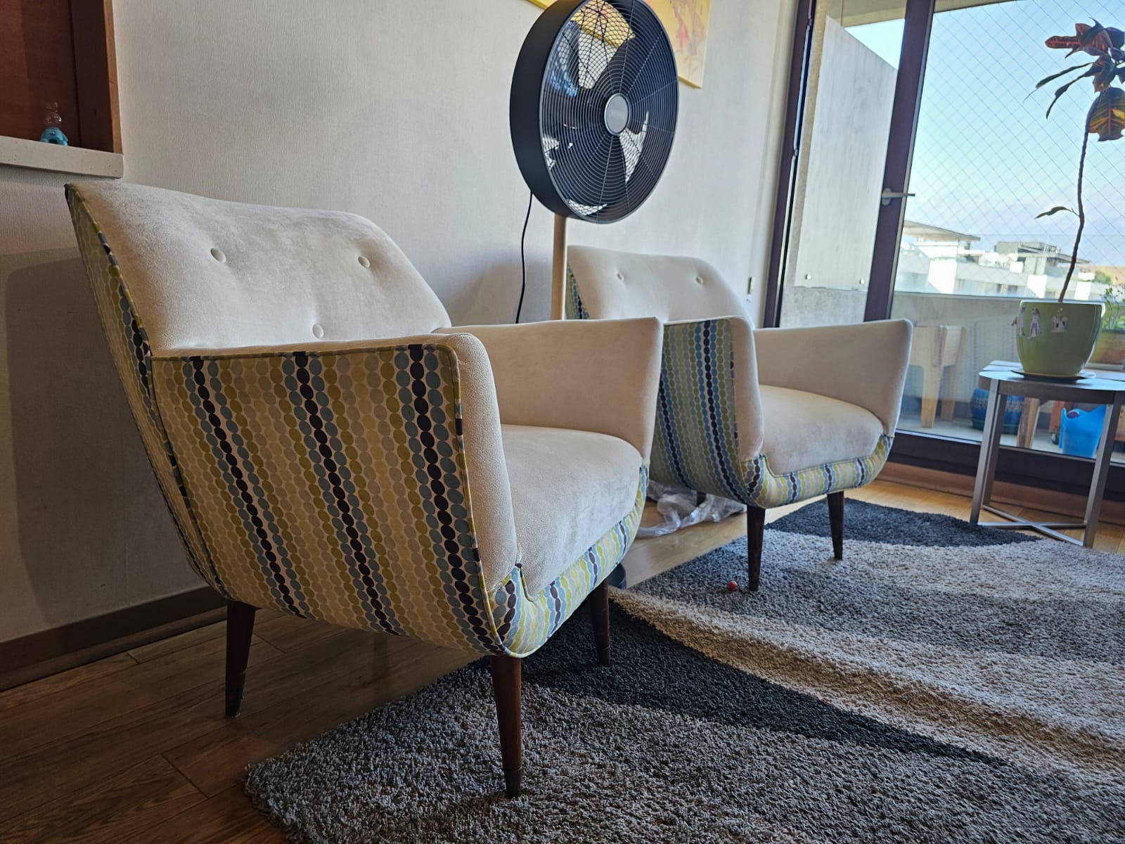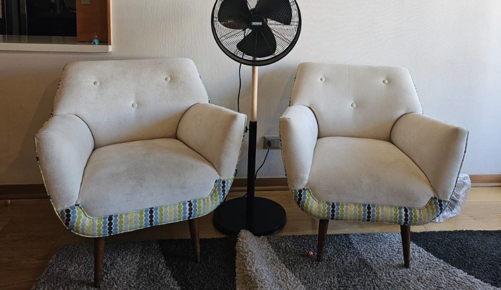 Detalle en una que tiene una pata rota y tapiz requiere limpieza
