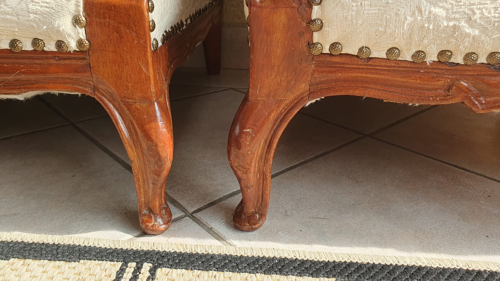 Detalles por el uso en patas, rasguños en el tapiz, se recomienda retapizar