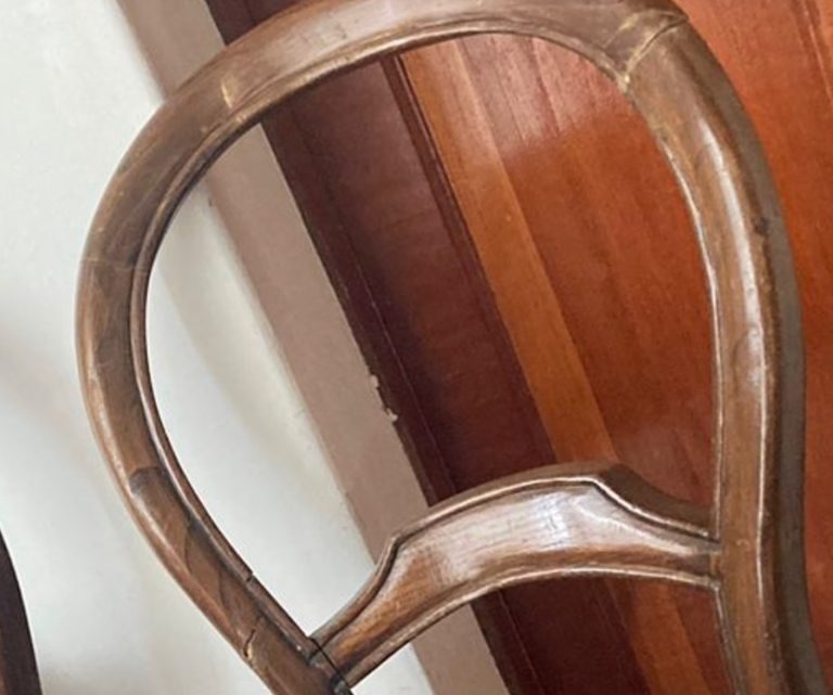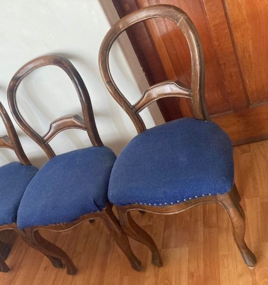 Detalles de una silla con una mancha leve y otra un poco agrietada
