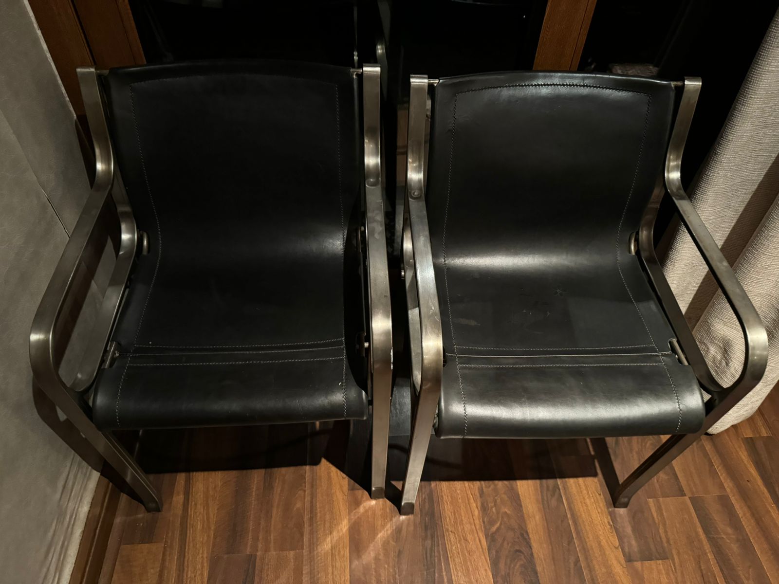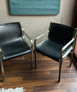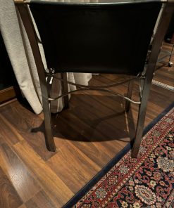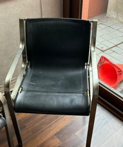 Etiquetas: Mobiliario de salón, muebles en buen estado, Par sitiales cuero negro y metal, Par sitiales de calidad, Par sitiales en buen estado, Sitiales 58 x 37 x 79 cm, Sitiales con detalles en cuero, Sitiales de diseño, Sitiales de metal, Sitiales para sala, sitiales-de-cuero