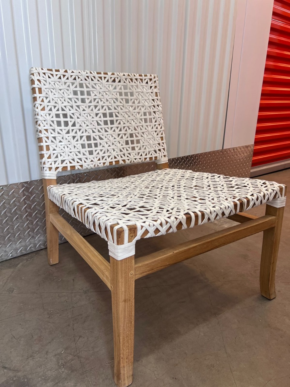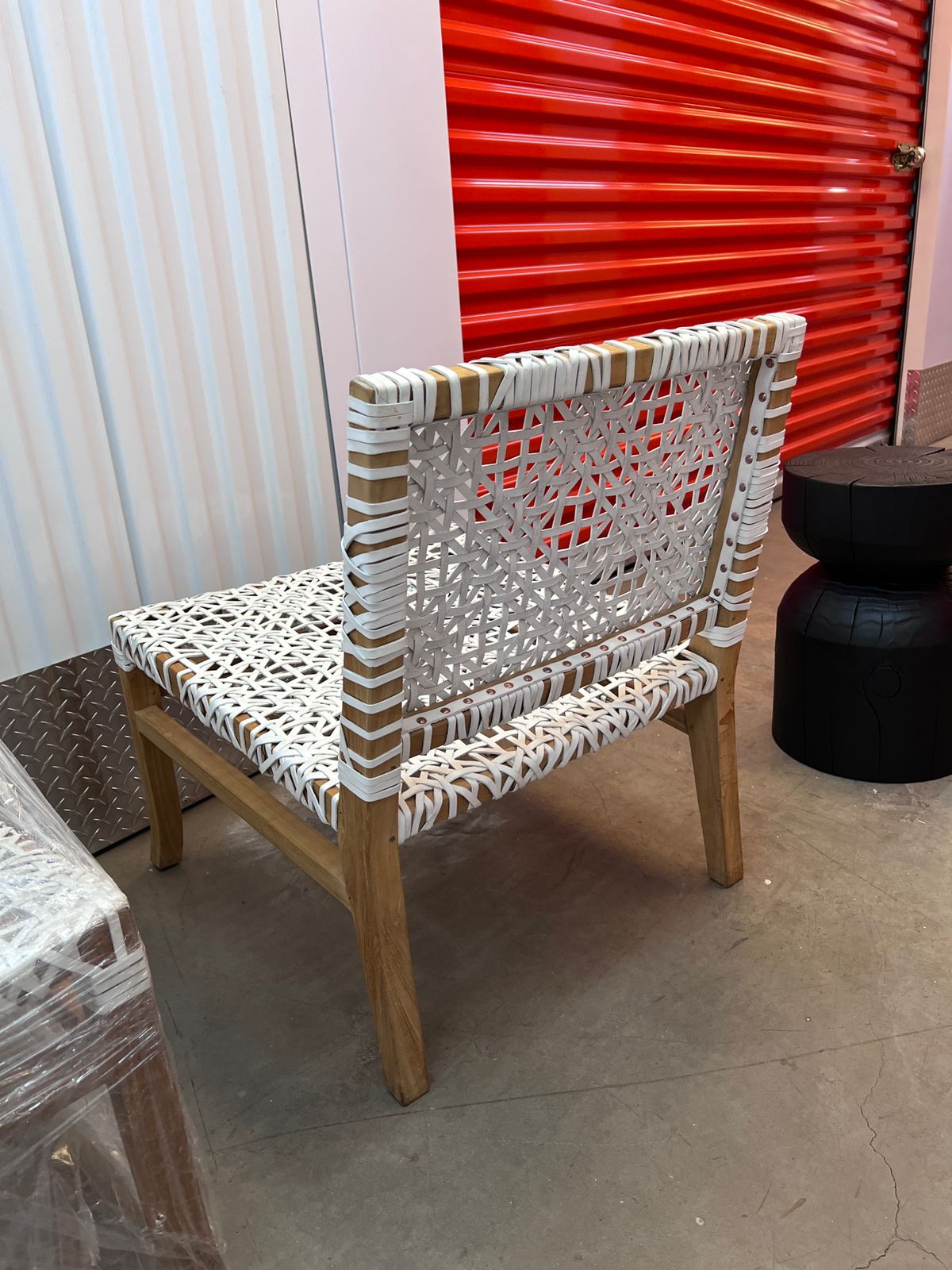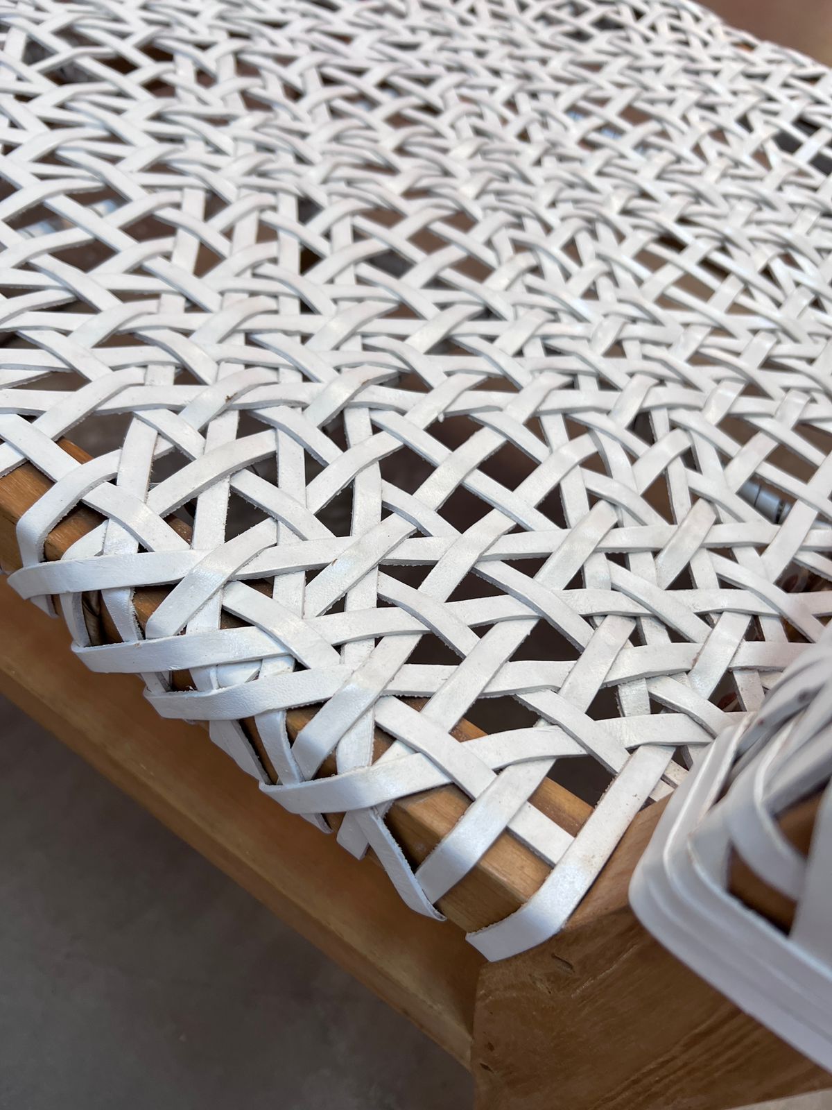 Material madera y entretrejido de cuero natural