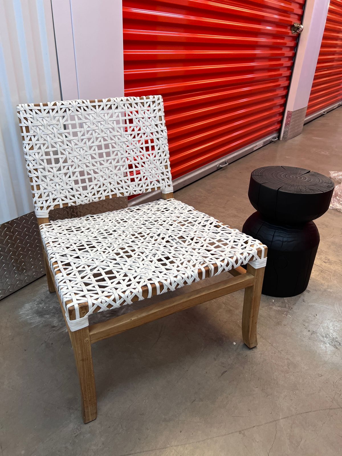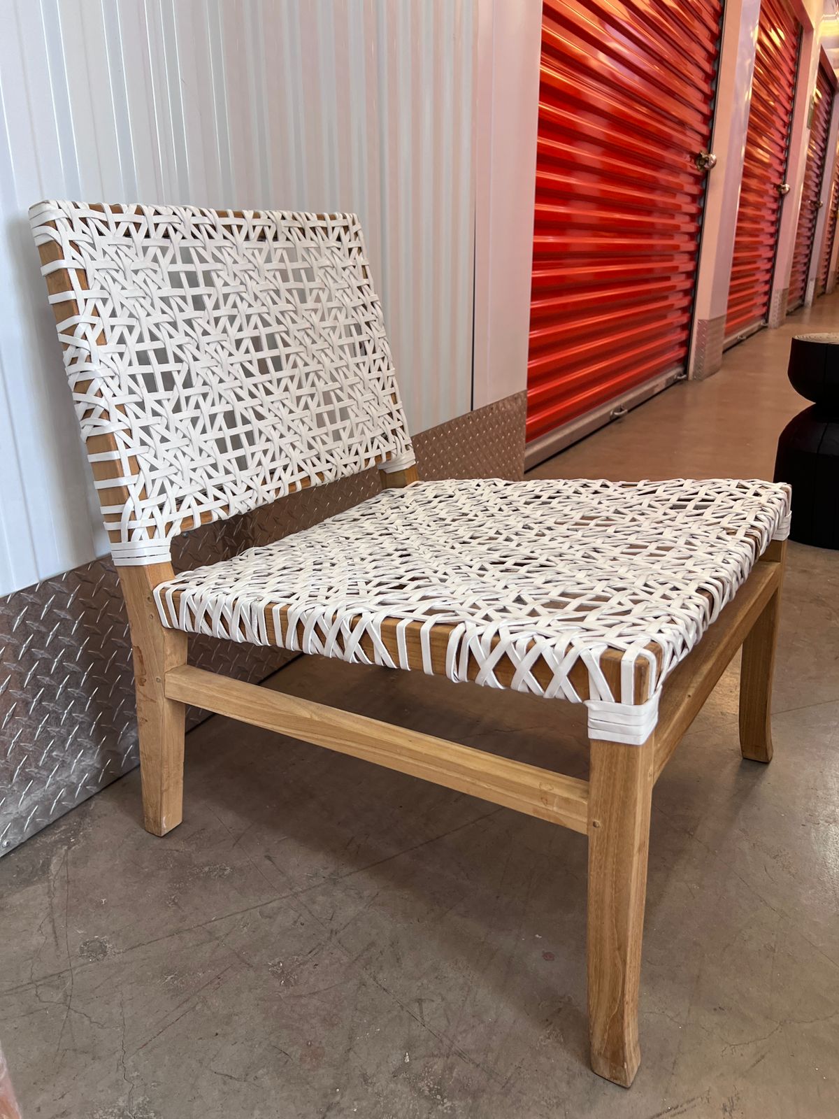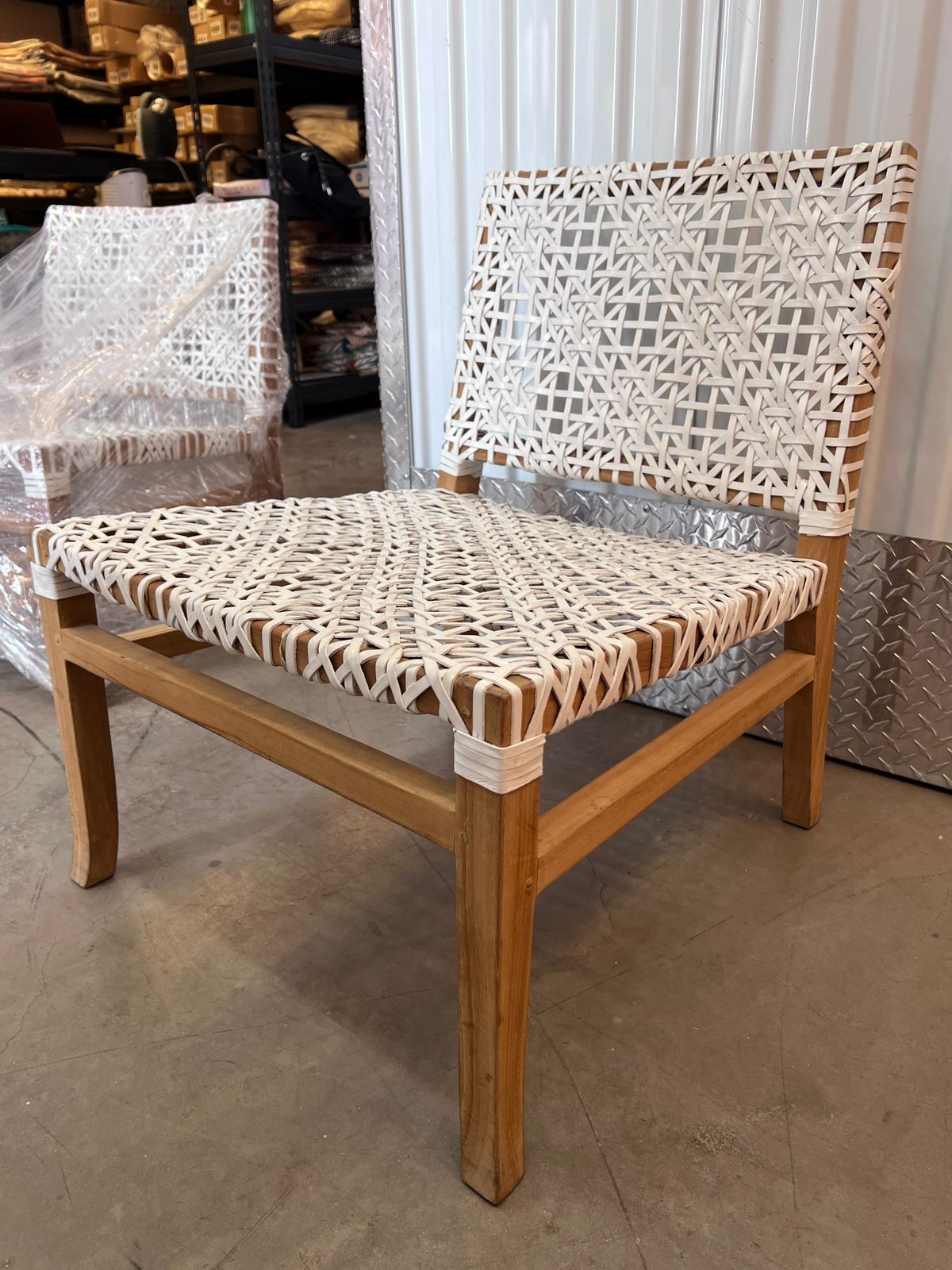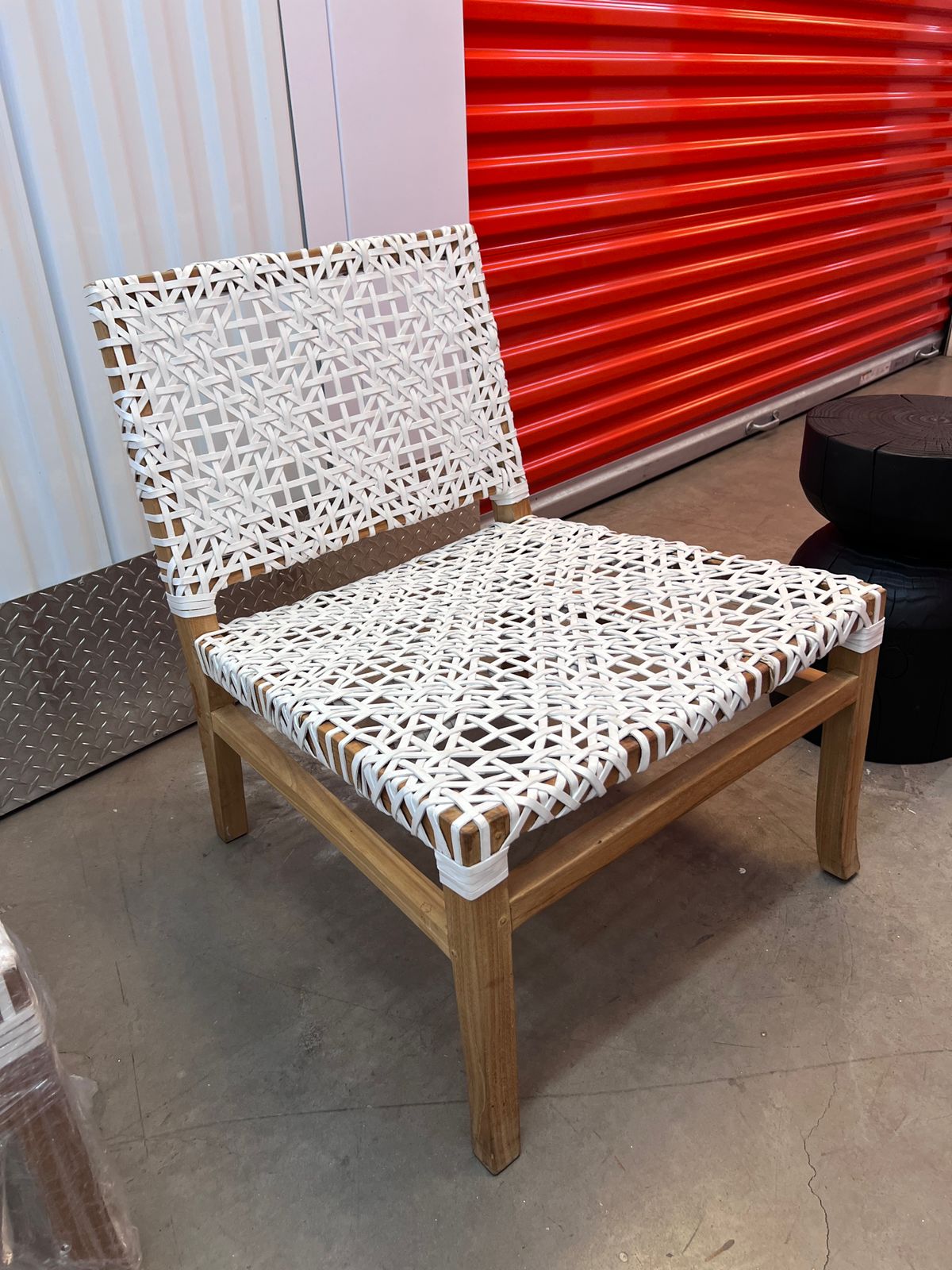 Material madera y entretrejido de cuero natural