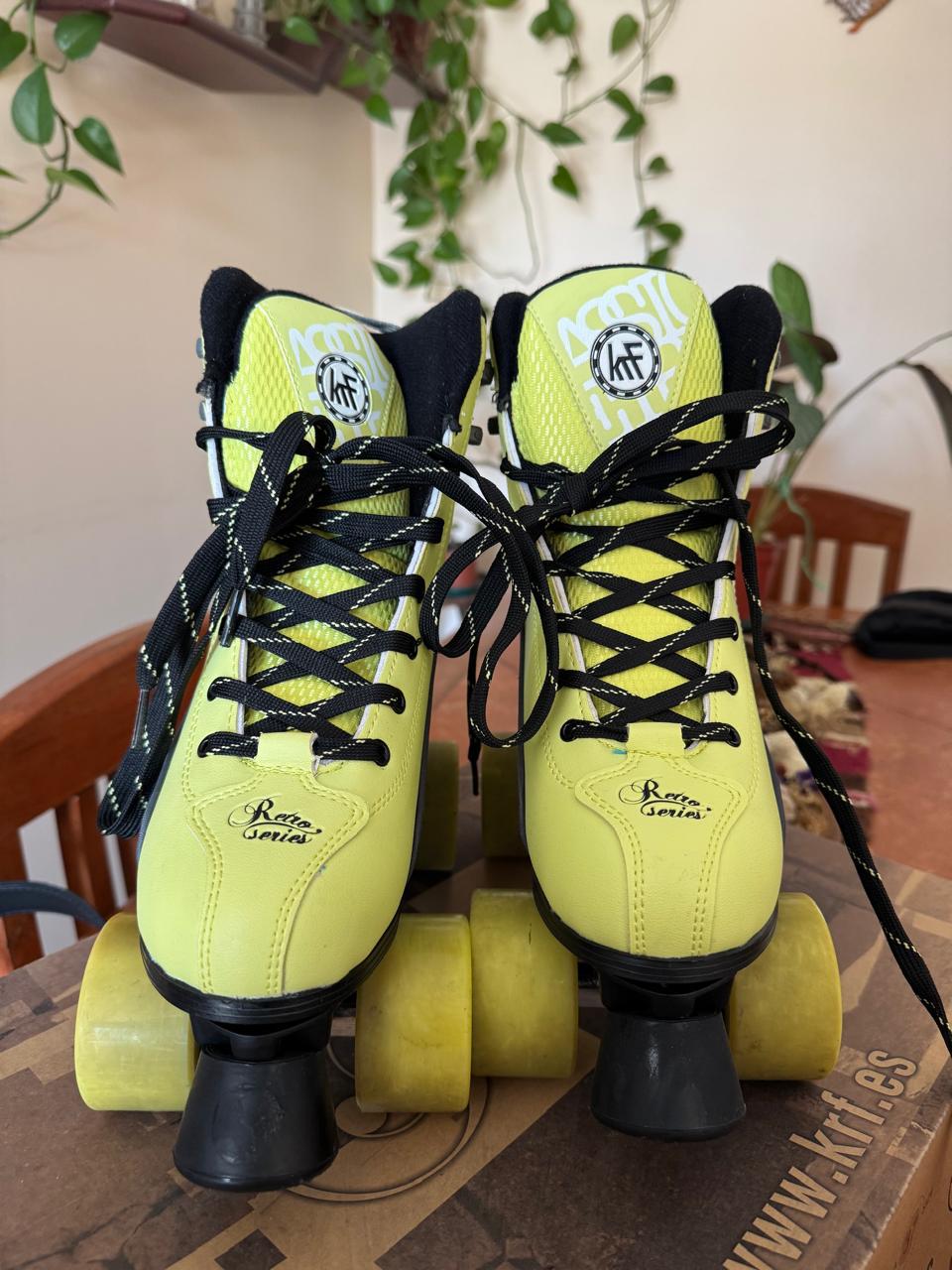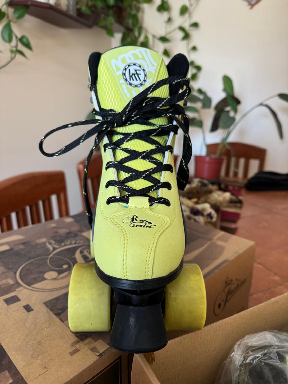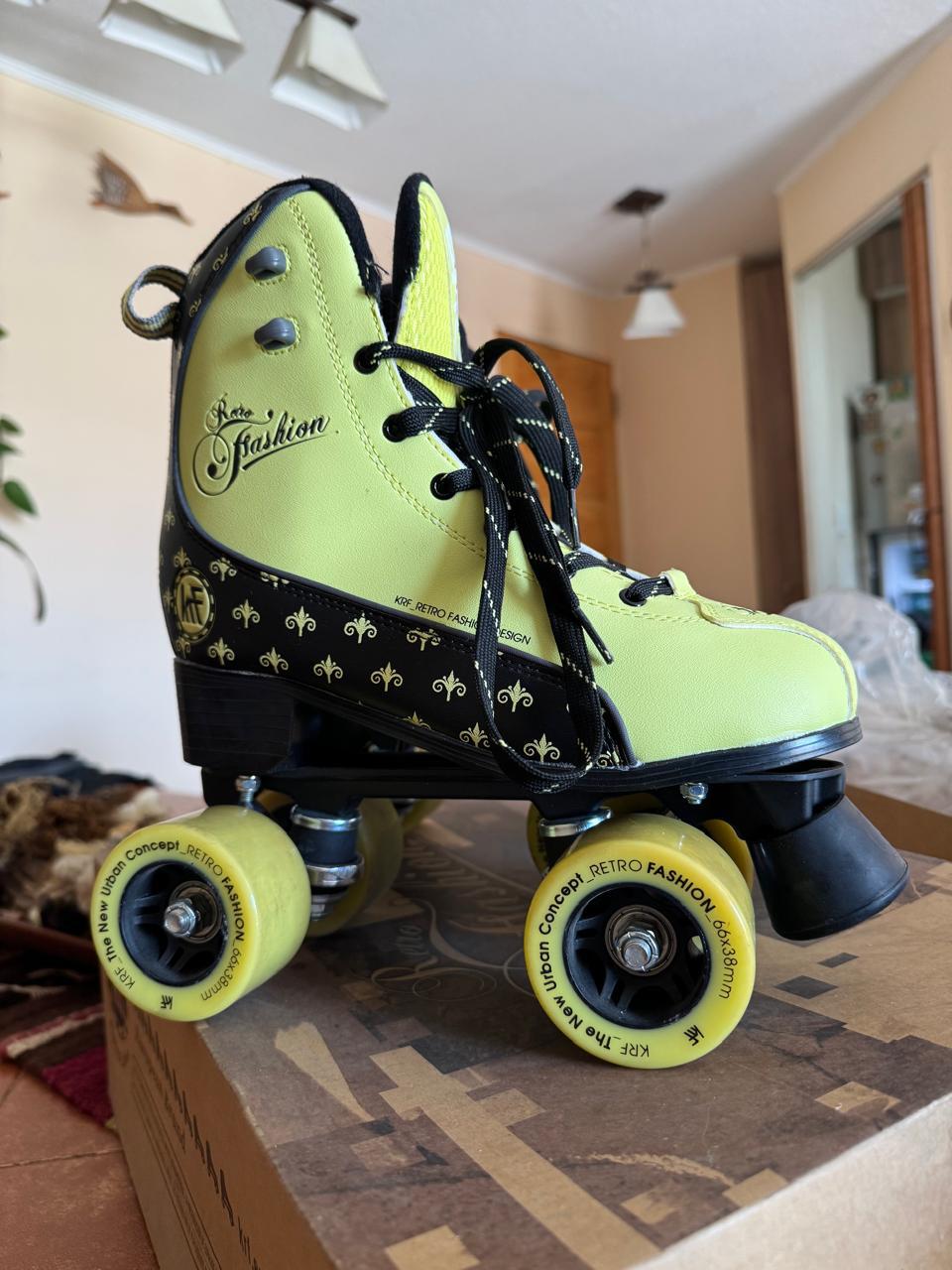 Etiquetas: patines 4 ruedas KRF ocasión, patines 4 ruedas KRF usados, patines 4 ruedas usados KRF Retro Fashion, patines estilo clásico KRF segunda mano., patines KRF fashion usados, patines KRF mujer segunda mano, patines KRF retro para adultos, patines lima negro KRF baratos, patines retro KRF lima con negro, patines vintage 4 ruedas KRF