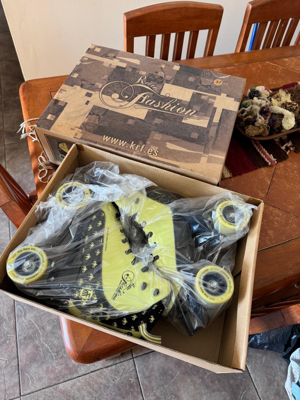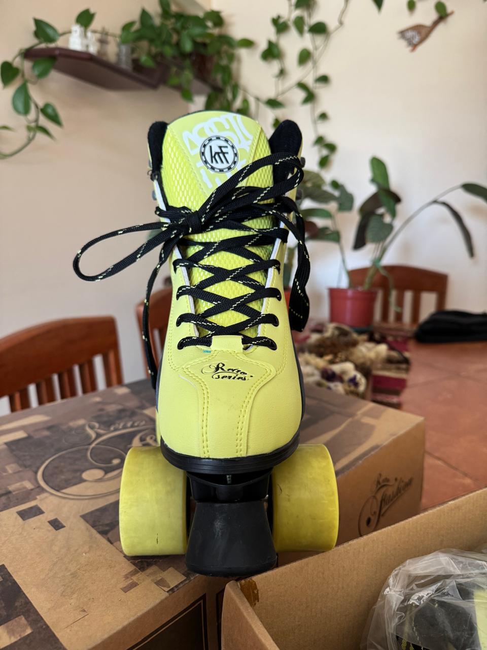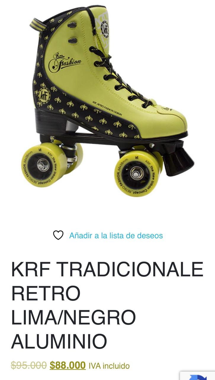 Etiquetas: patines 4 ruedas KRF ocasión, patines 4 ruedas KRF usados, patines 4 ruedas usados KRF Retro Fashion, patines estilo clásico KRF segunda mano., patines KRF fashion usados, patines KRF mujer segunda mano, patines KRF retro para adultos, patines lima negro KRF baratos, patines retro KRF lima con negro, patines vintage 4 ruedas KRF