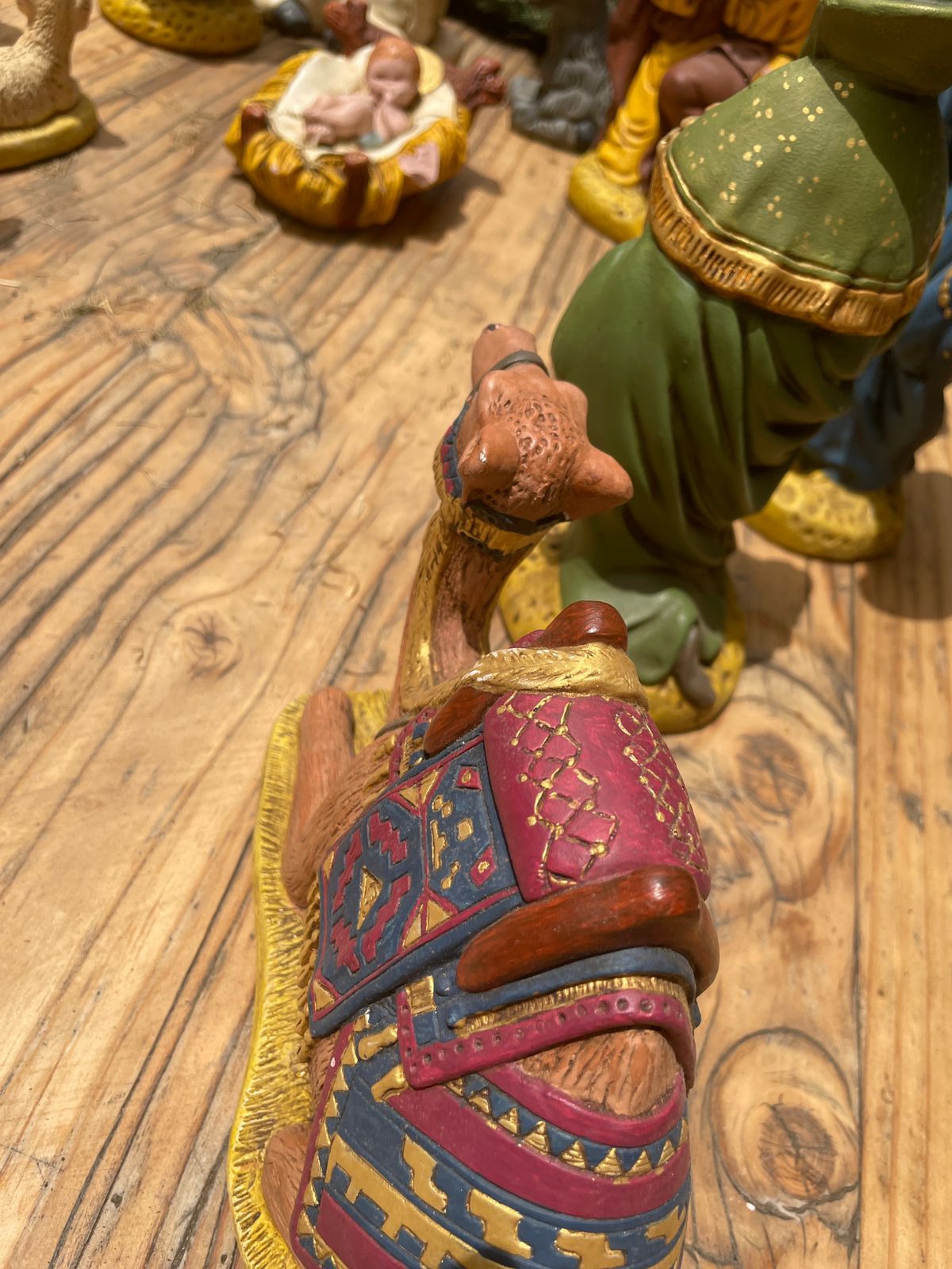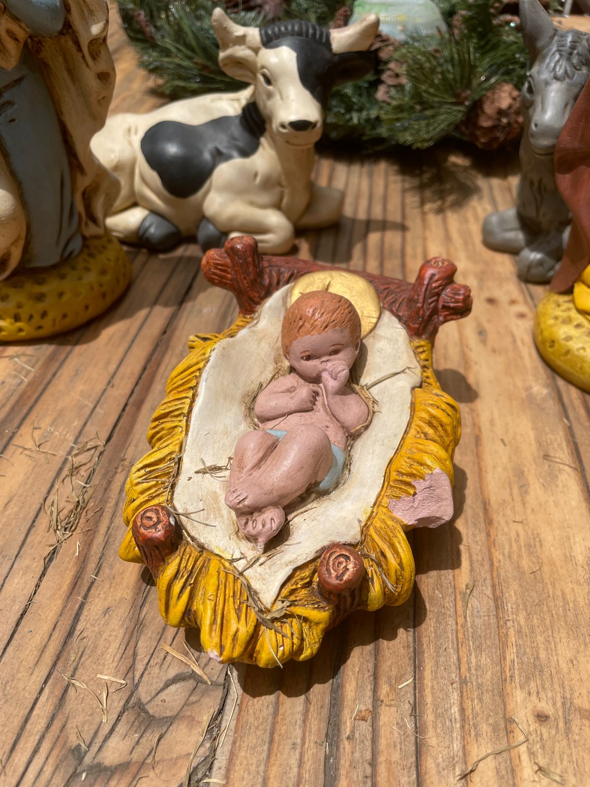 Pintado a mano, buen estado, algunos piquetes en pintura, niño Jesús se le salió un pedacito que se puede reparar