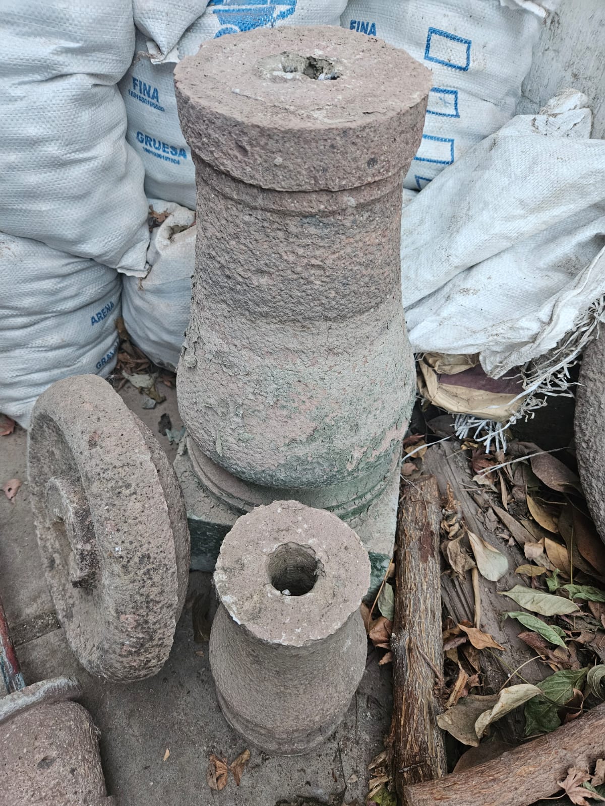 Medidas: disco pequeño 30 cm y grande 50 cm Diam, altura 100 cm