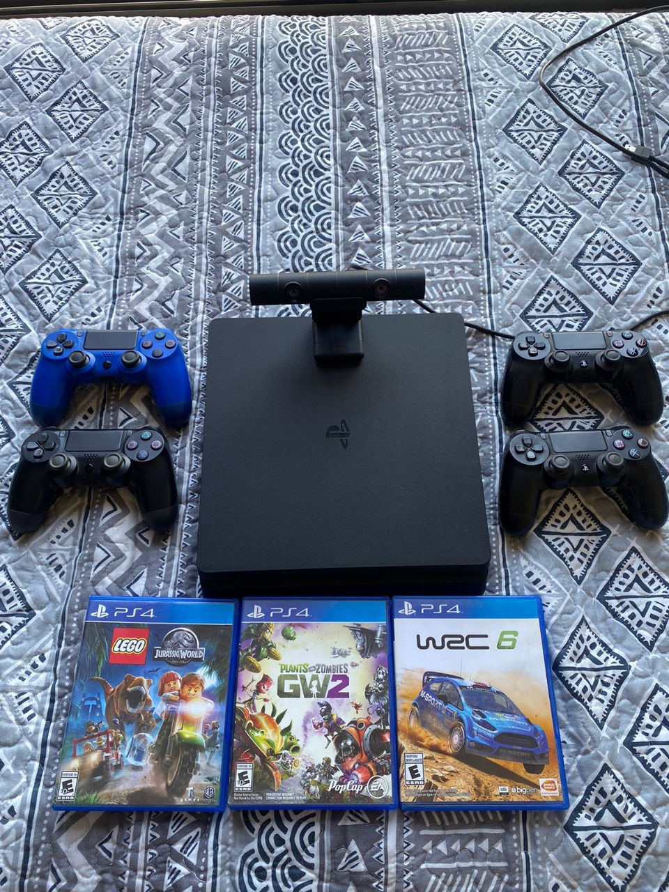 Etiquetas: 2 alternativos, 2 controles originales, 3 juegos, 500 GB, camara, cámara Sony, playstation 4 Slim