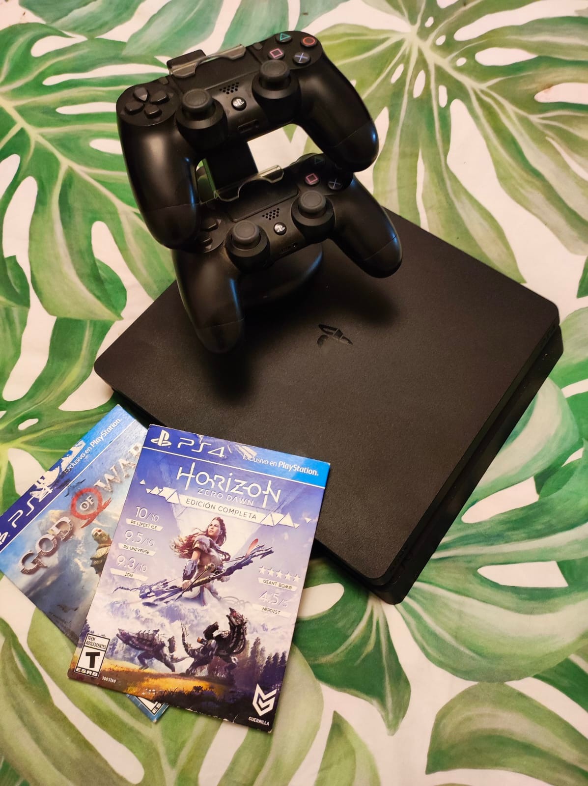 Incluye 2 controles, soporte cargador para 2 mandos y 2 juegos: God of Warr y Horizon Zero Dawn edición extendida