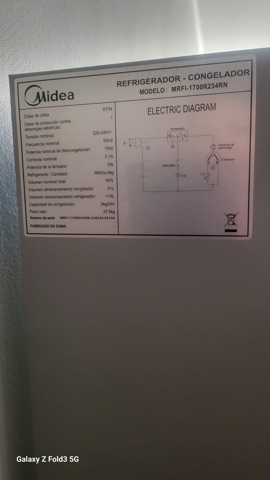 Refrigerador Midea buttom freezer 169 Lts