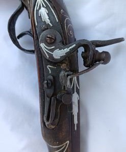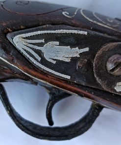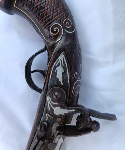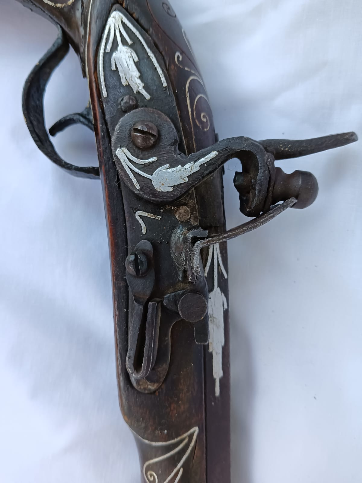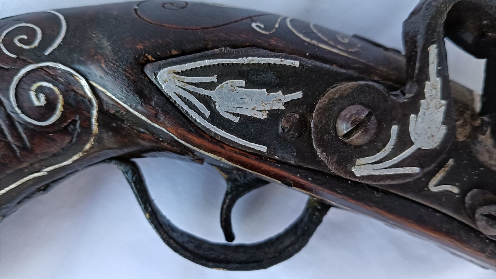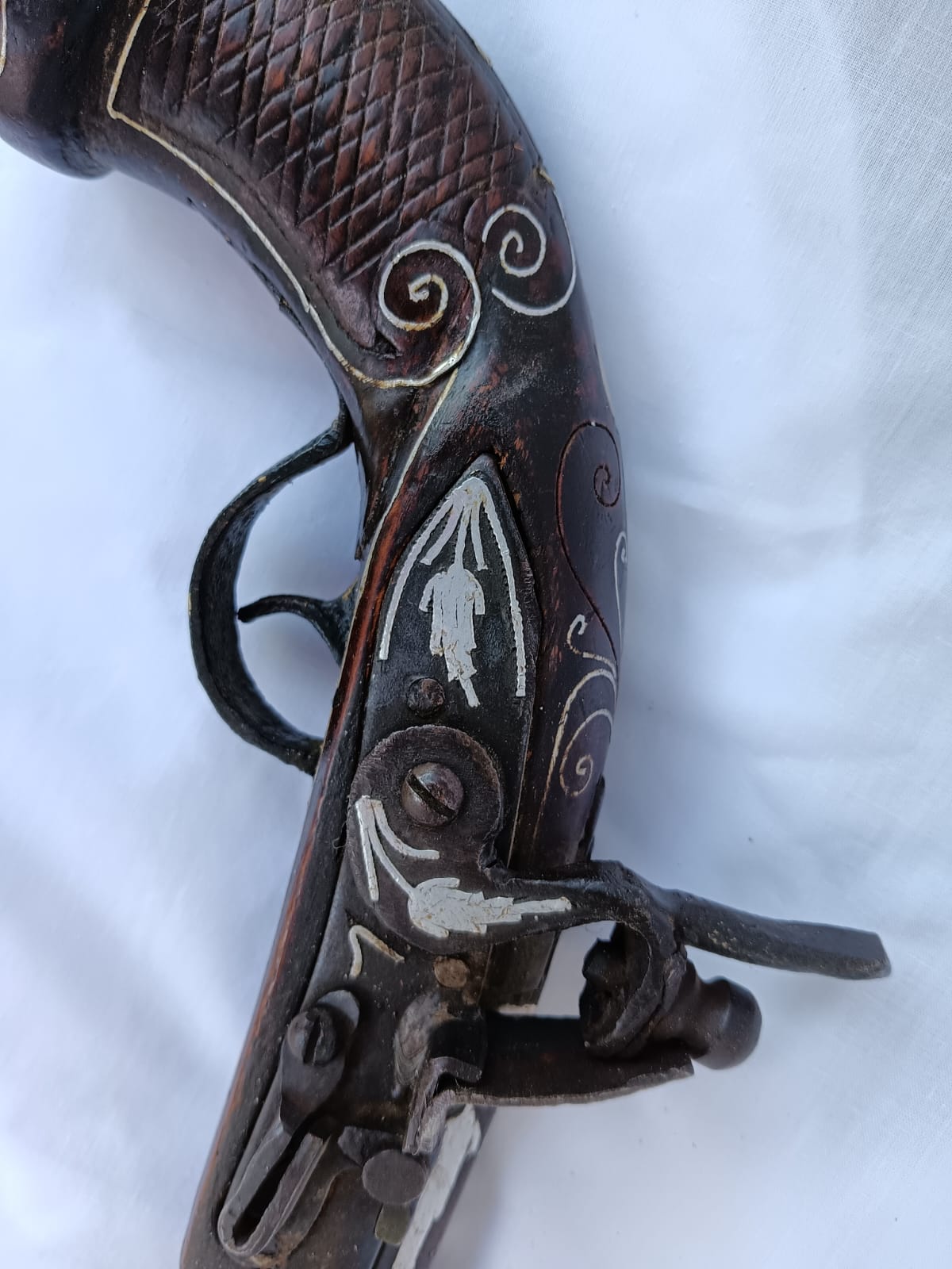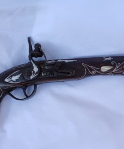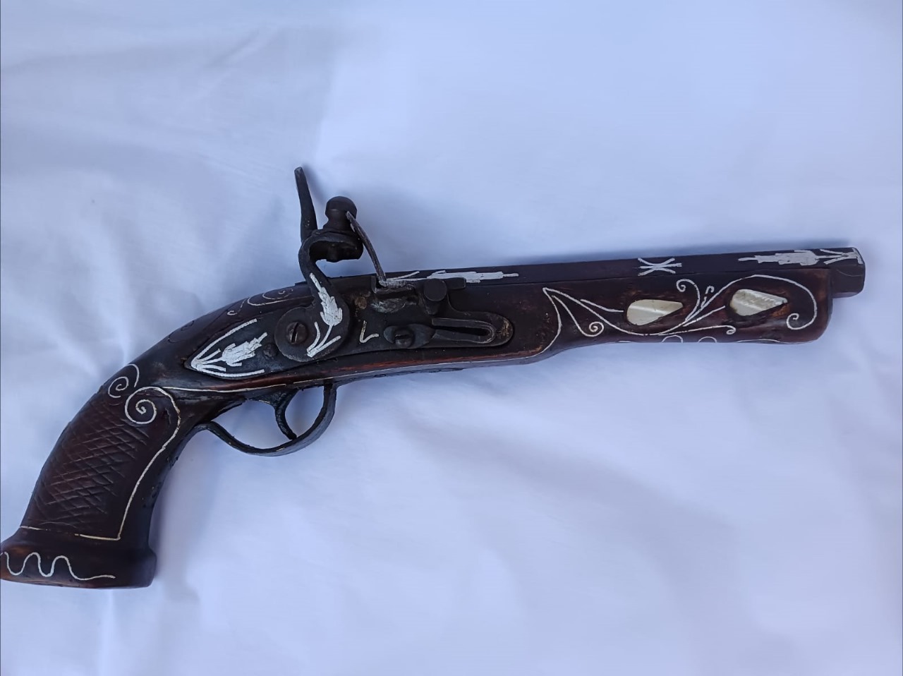 Reproducción pistola antigua en madera y con incrustaciones de nácar