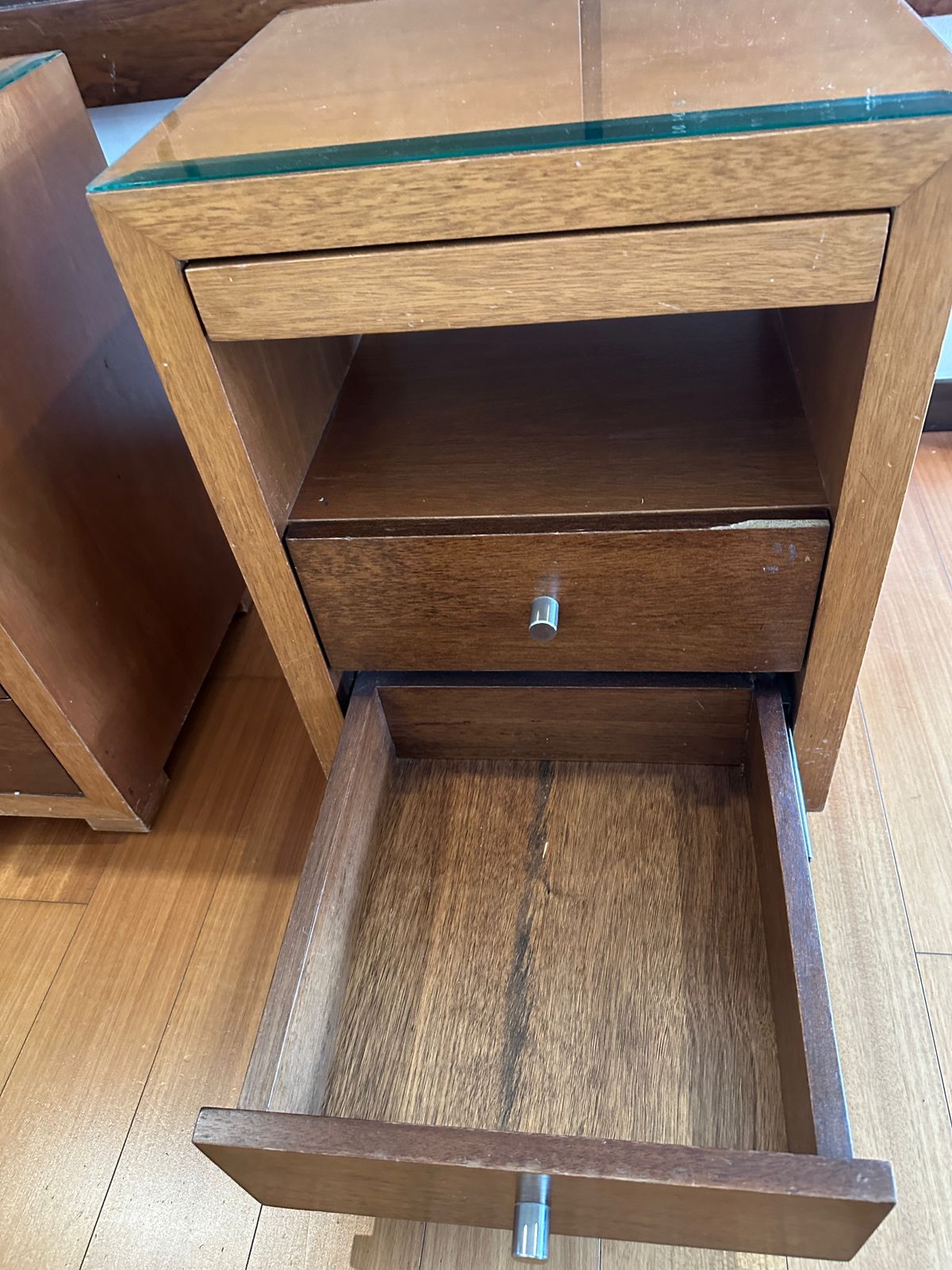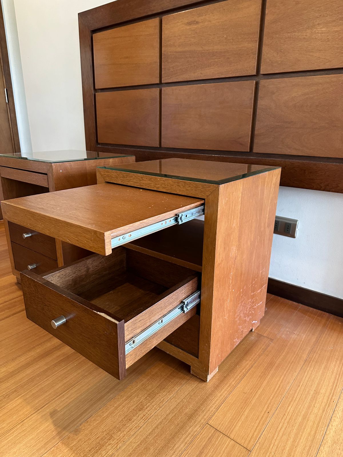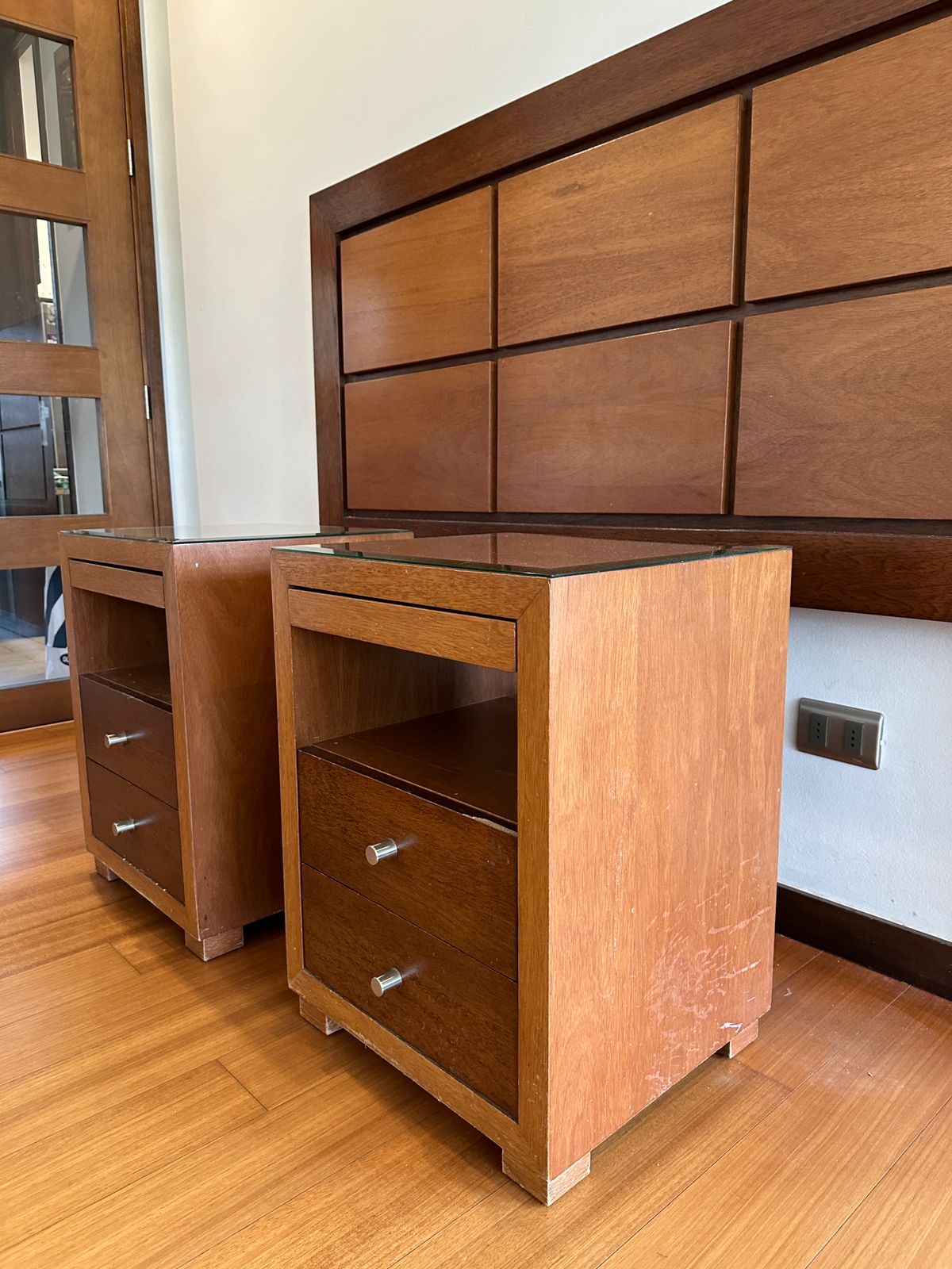 De madera, veladores con cajones y bandeja deslizable con rieles