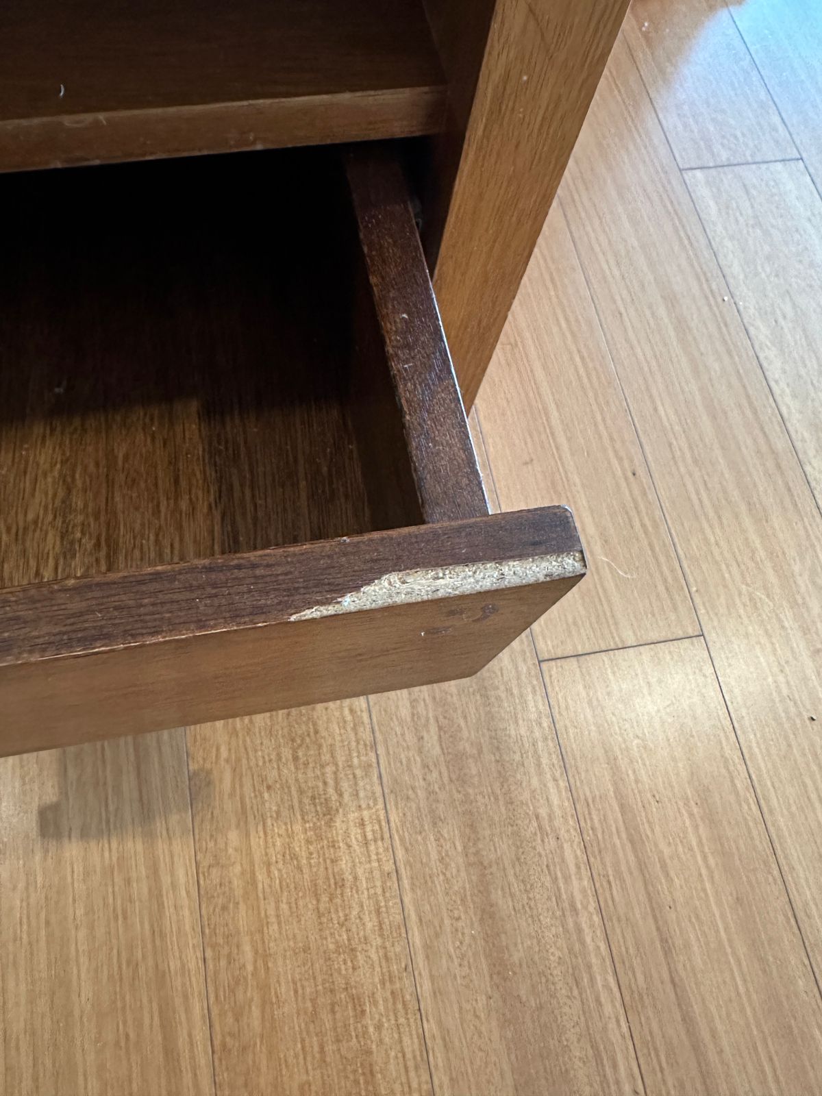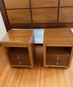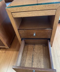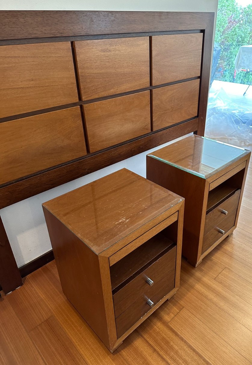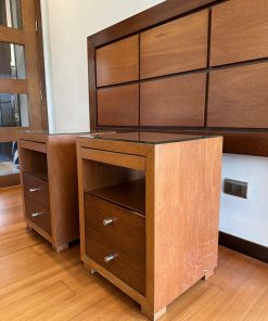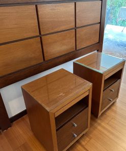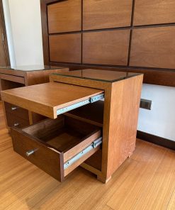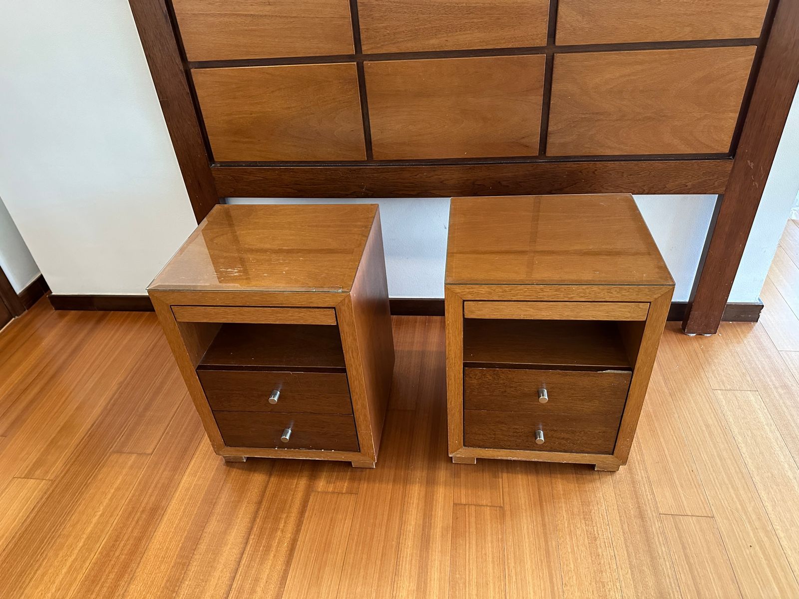 De madera, veladores con cajones y bandeja deslizable con rieles