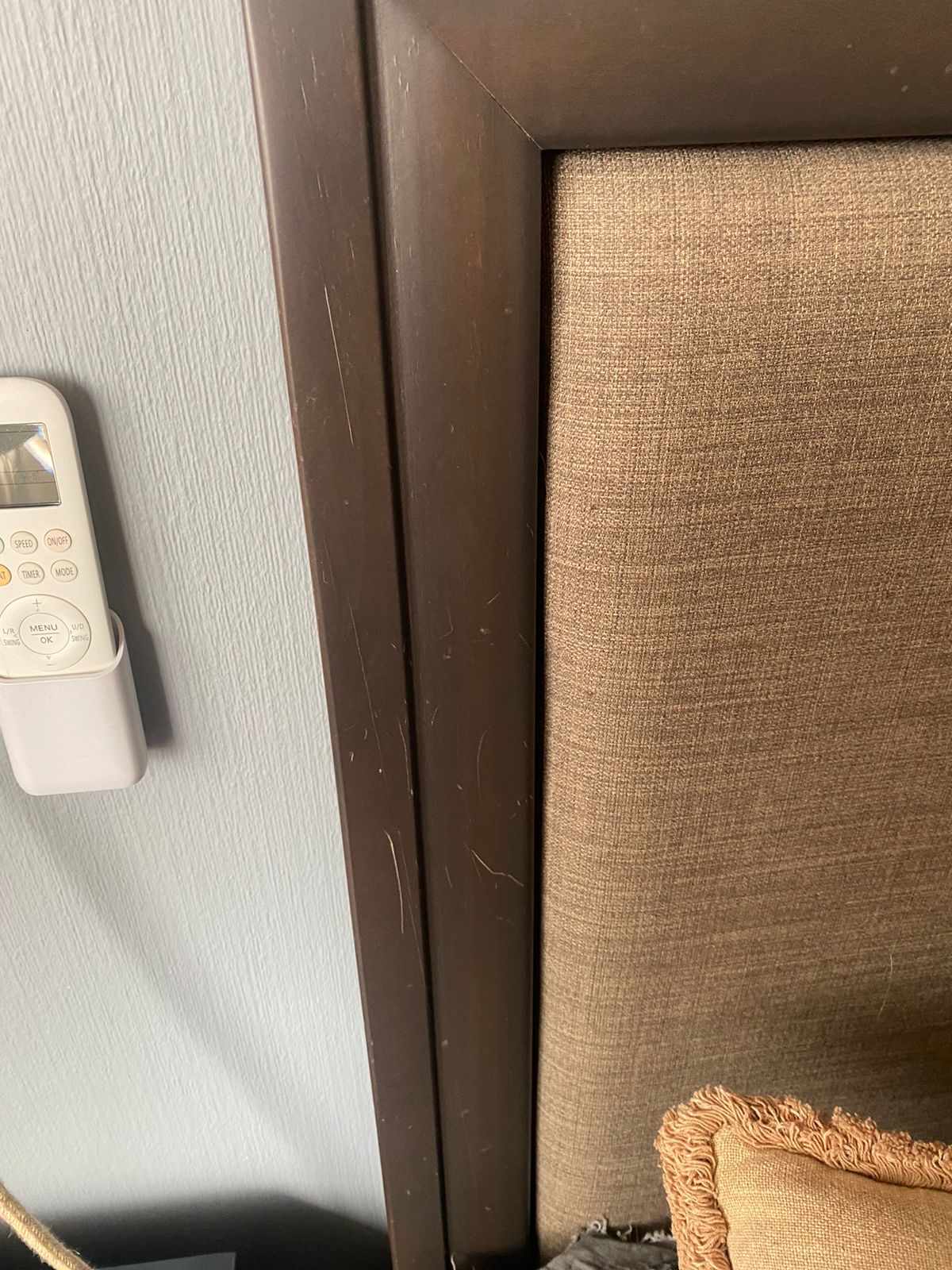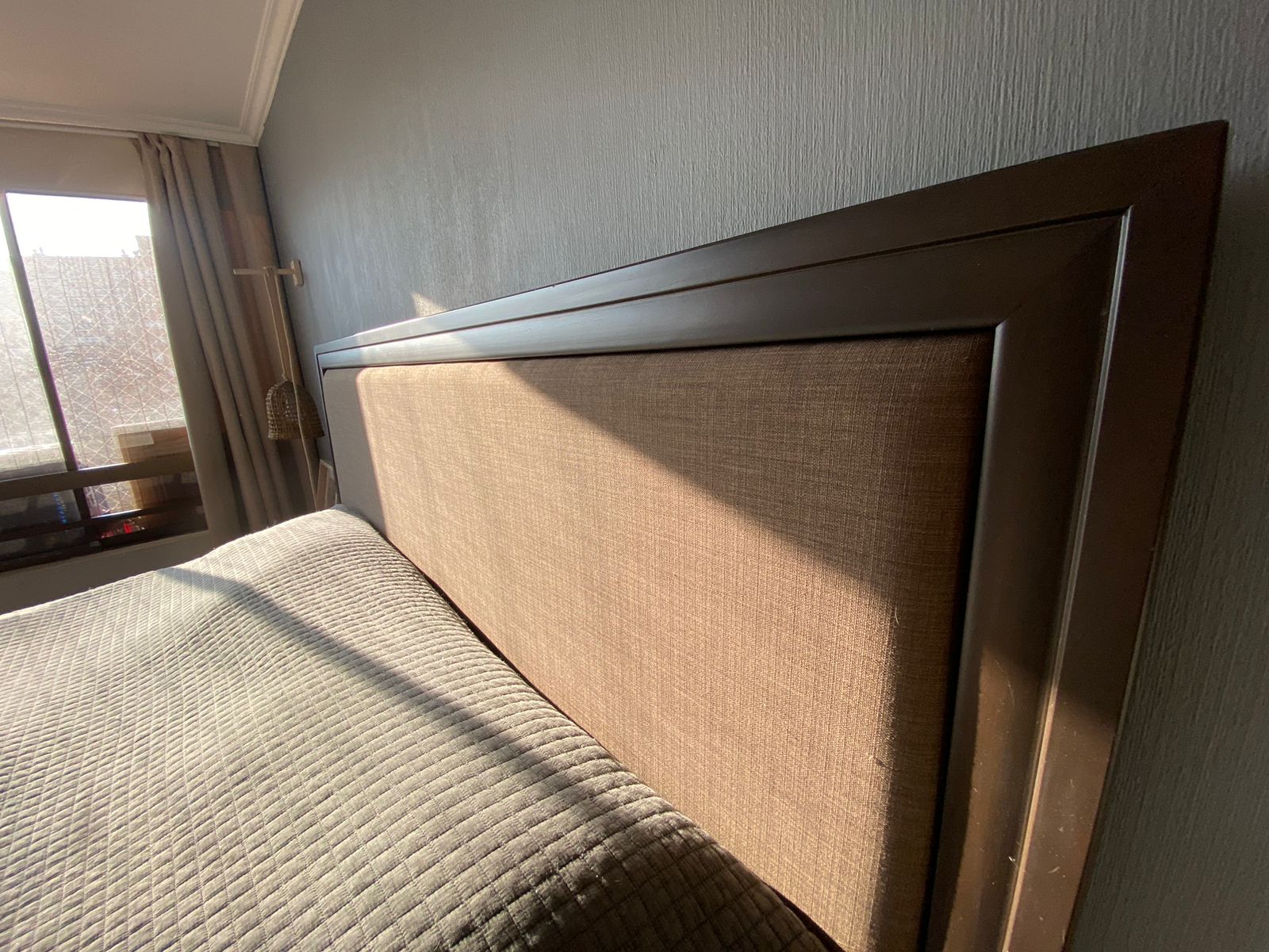 Madera y tela acolchada, va atornillado a base