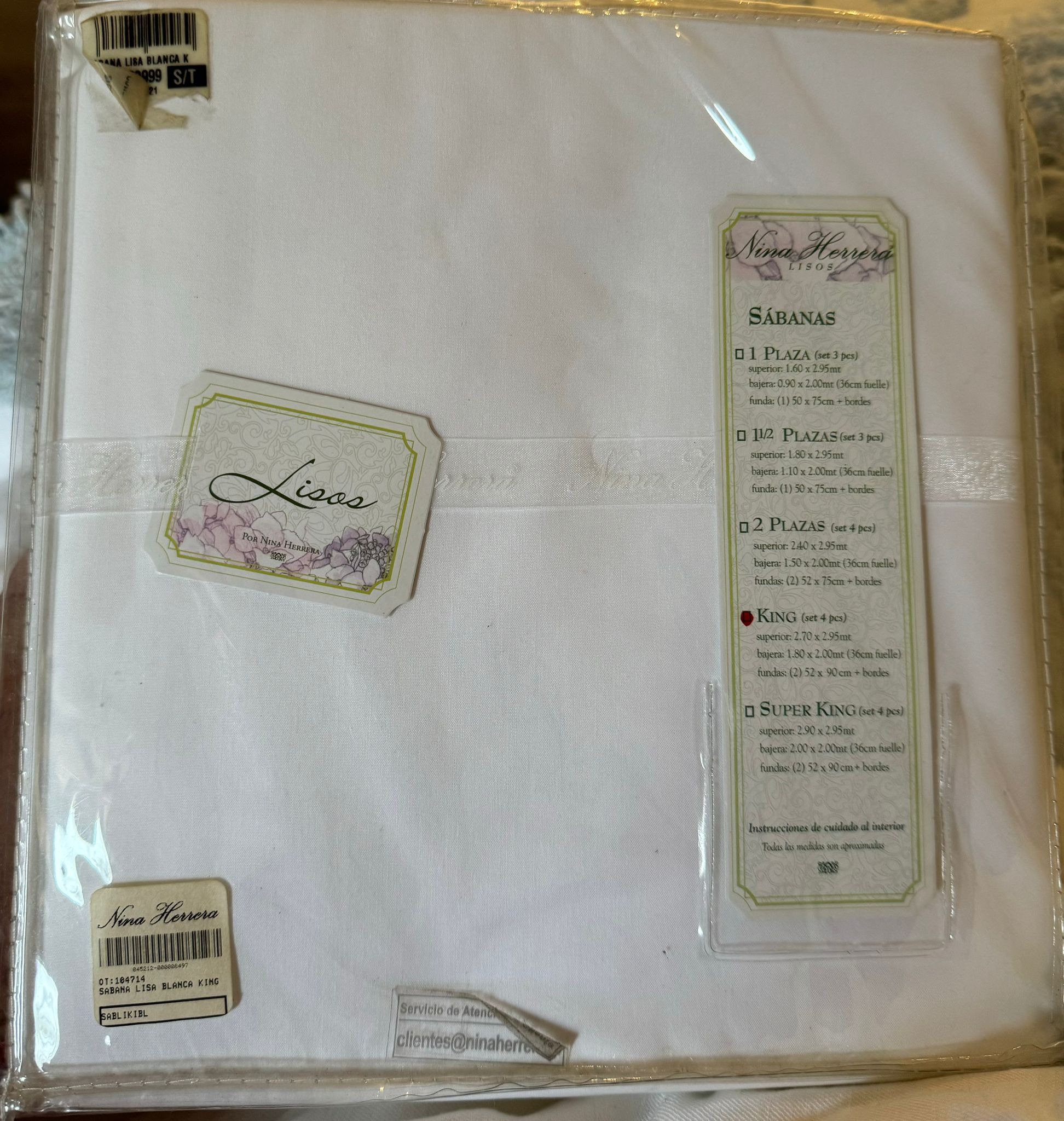 Etiquetas: 220 hilos, blanco, en su empaque, king, Nina Herrera, nuevas, sabanas