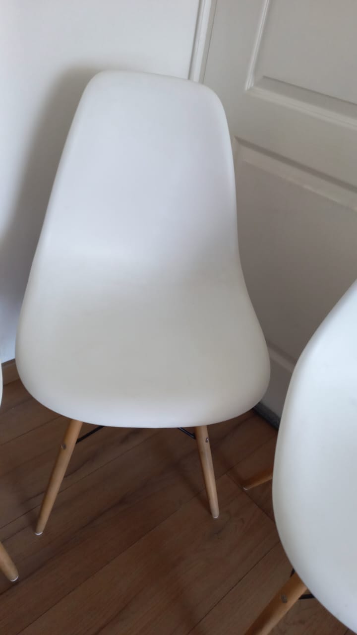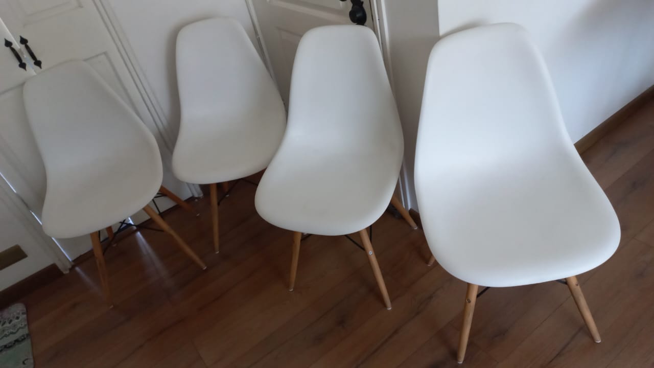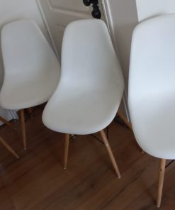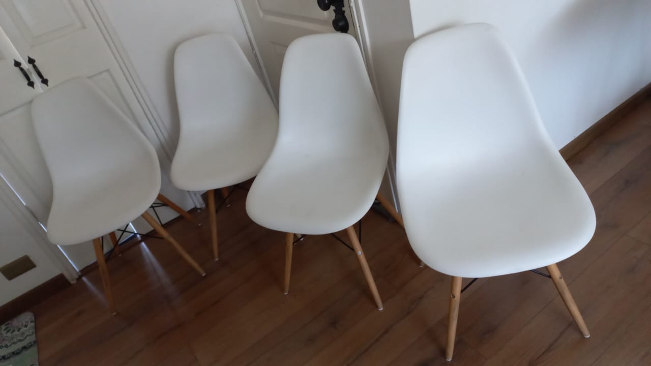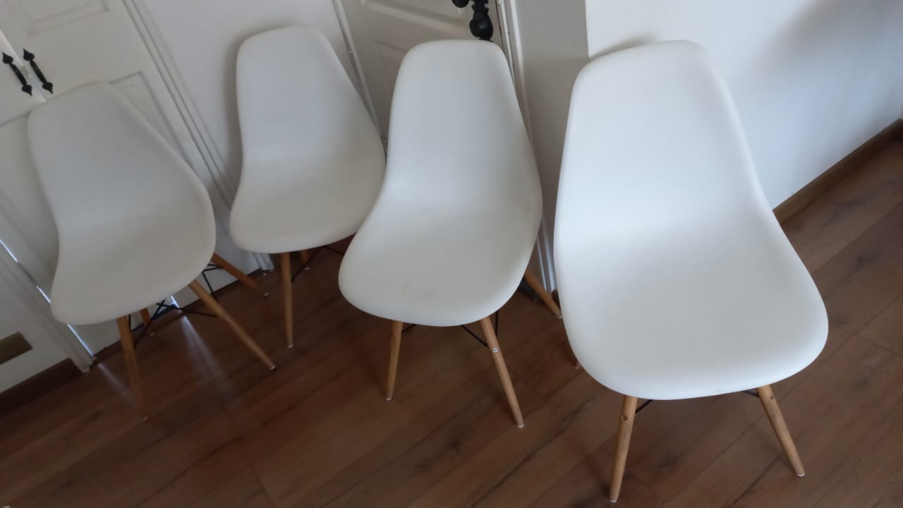 Etiquetas: muebles para hogar, Set 4 sillas blancas Eames, set de sillas Eames, sillas, sillas blancas, sillas de diseño, sillas de segunda mano, sillas diseño Eames, sillas Eames blancas, sillas Eames en venta, sillas mid-century, sillas para comedor, Sillas para oficina, sillas vintage Eames