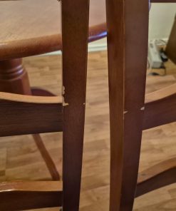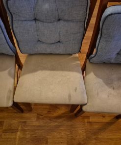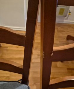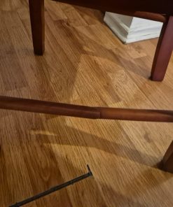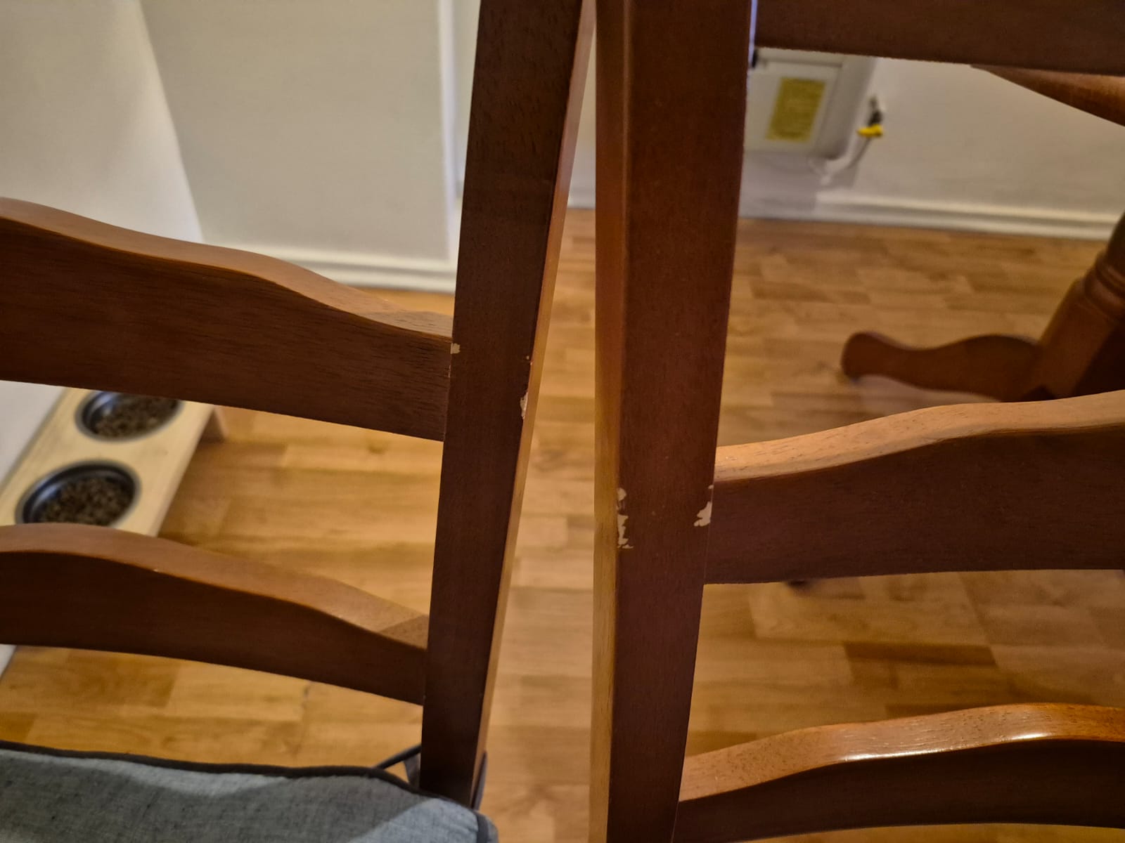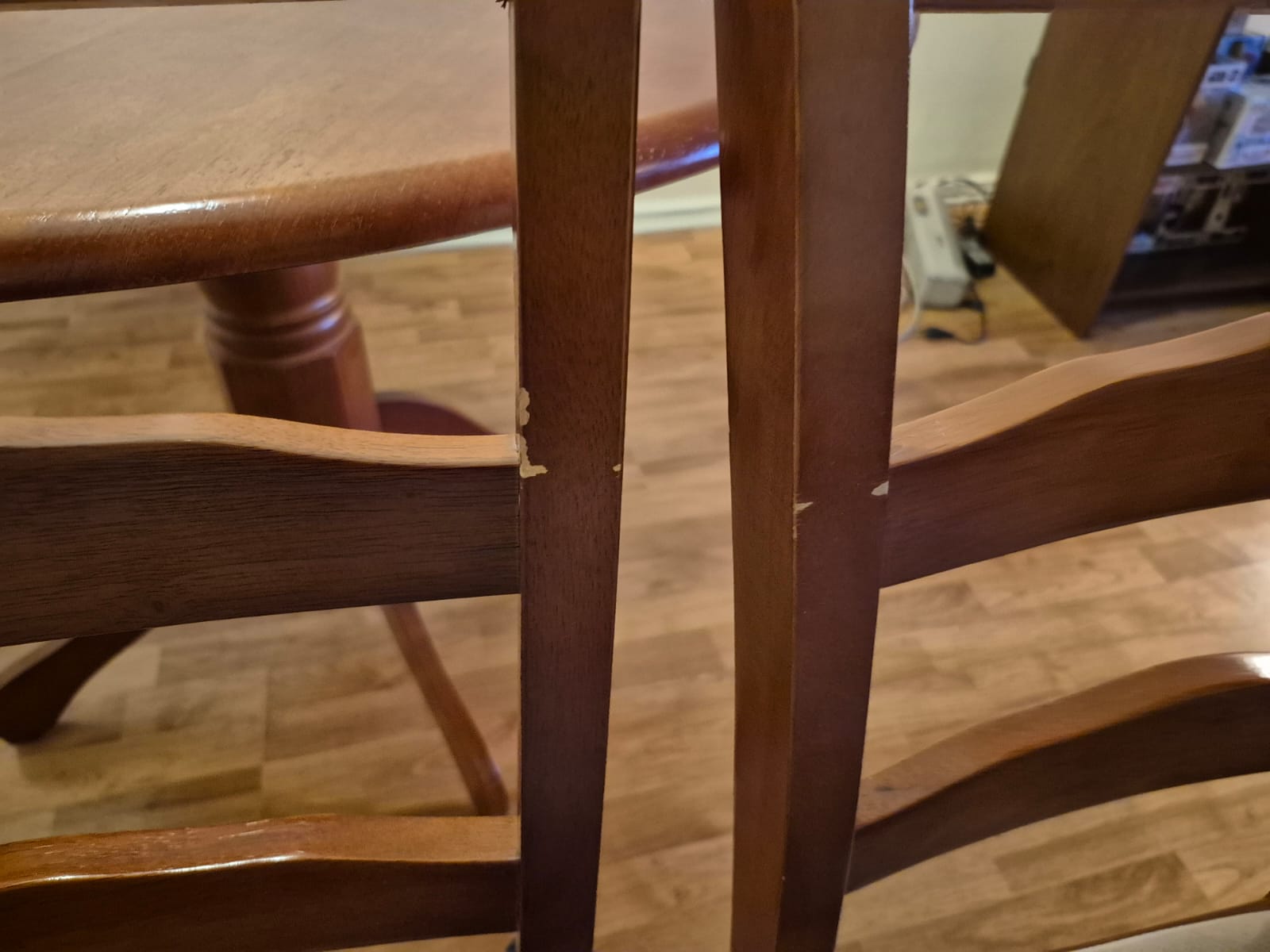 Picaduras por choque con la mesa, tapiz sucio, una de las sillas tiene un travesaño partido