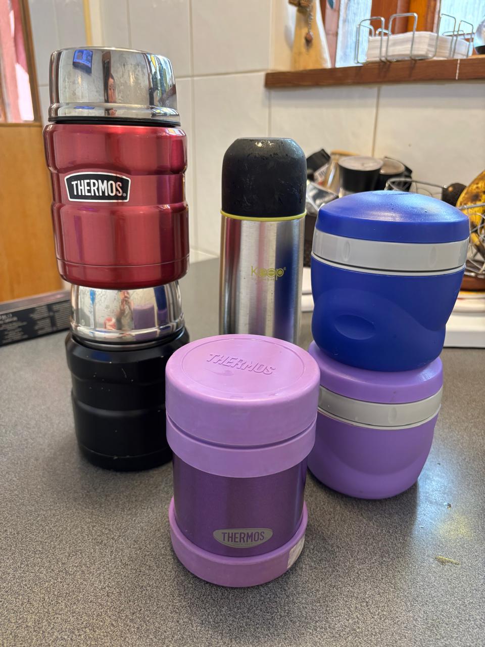 Capacidad 470 ml rojo y negro, 200 ml azul y morado, keep 300 ml