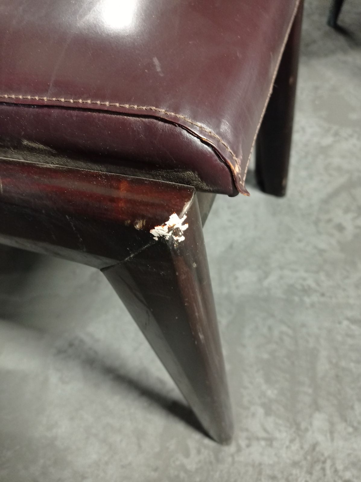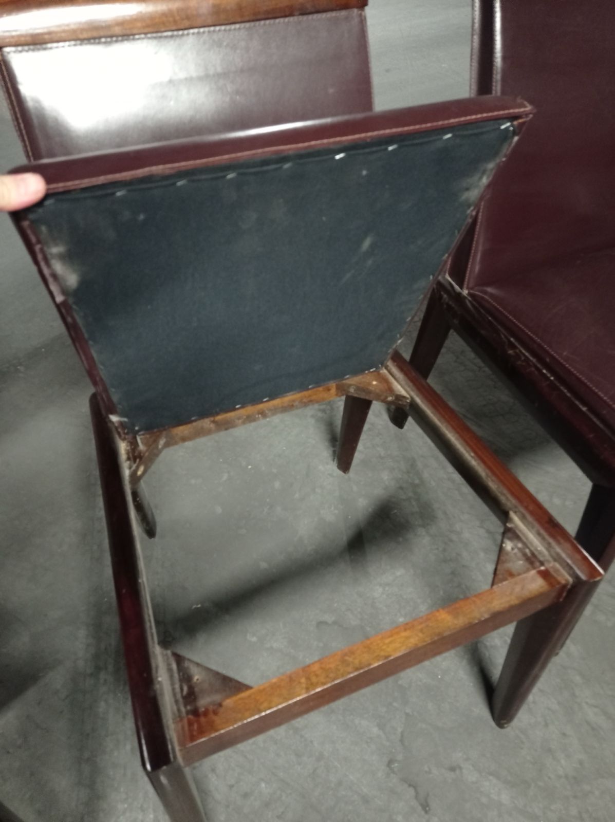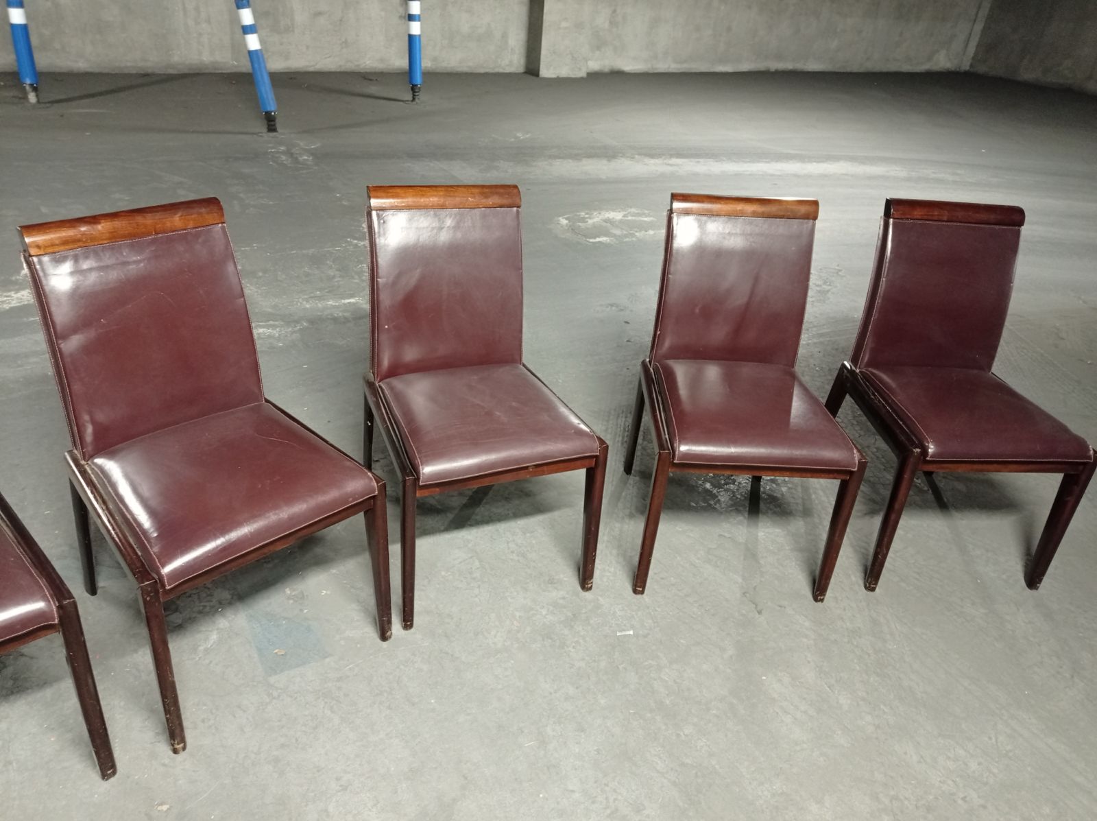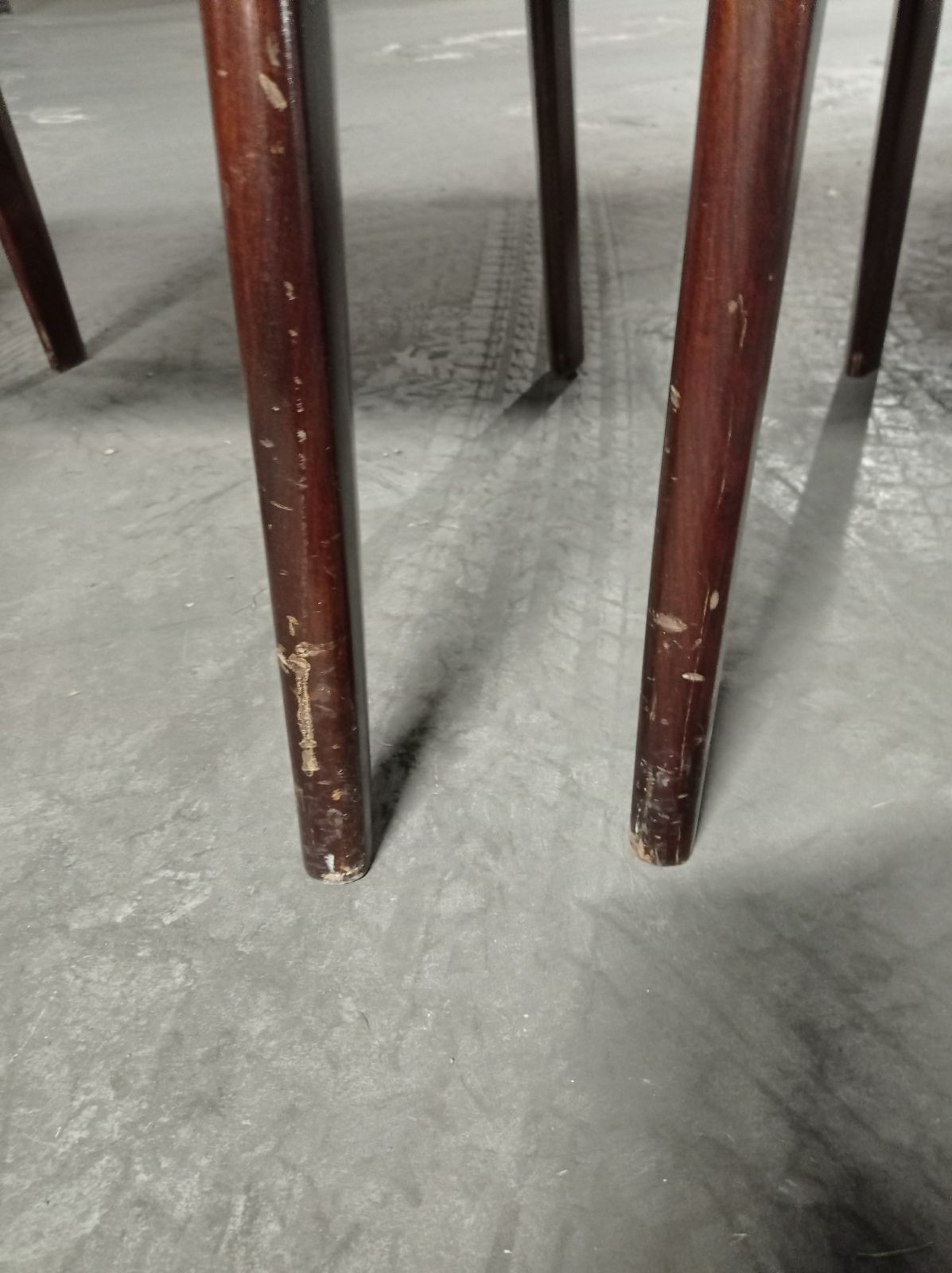 Hechas a medida 2006, réplica de una silla de la tienda de muebles en Uruguay Walmer, 4 de ellas tienen los respaldos inestables y una de ellas con el asiento suelto, desgaste natural por uso, piquetes y rayas en algunas de ellas (ver fotos), desgaste en patas.