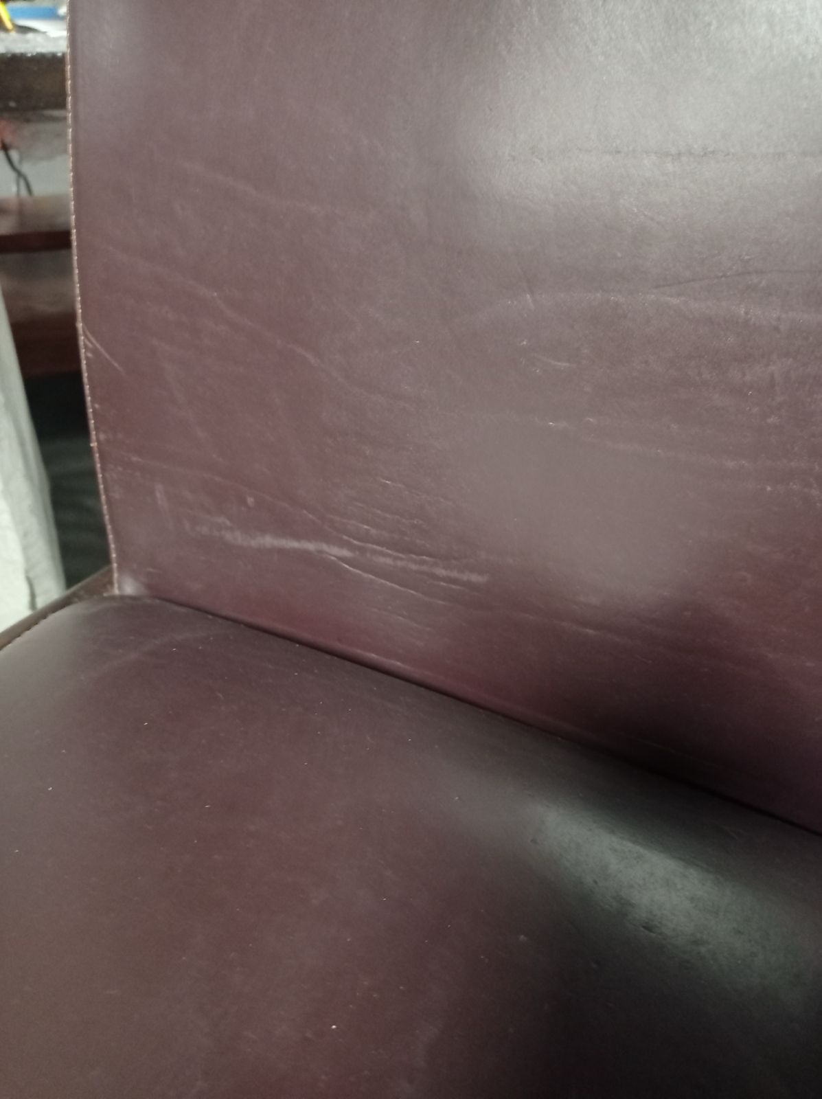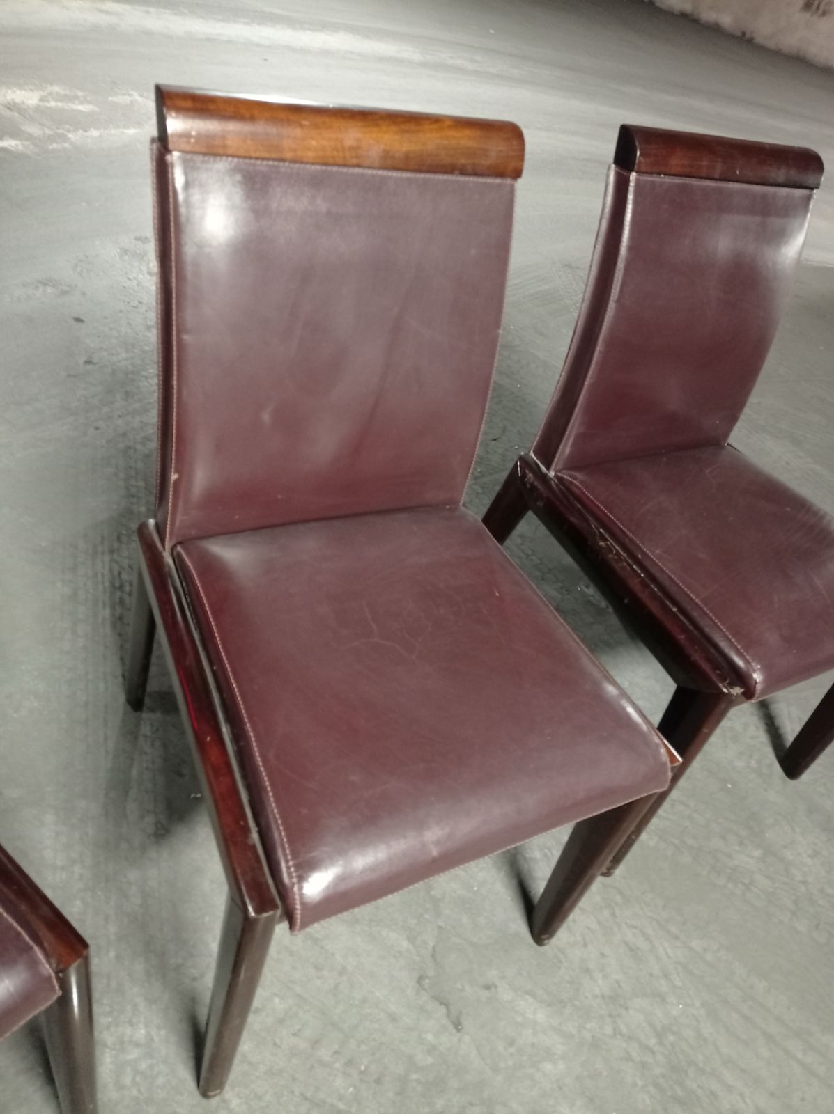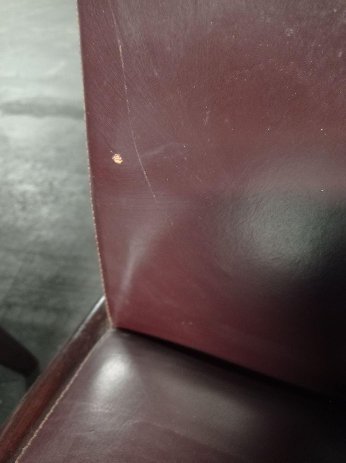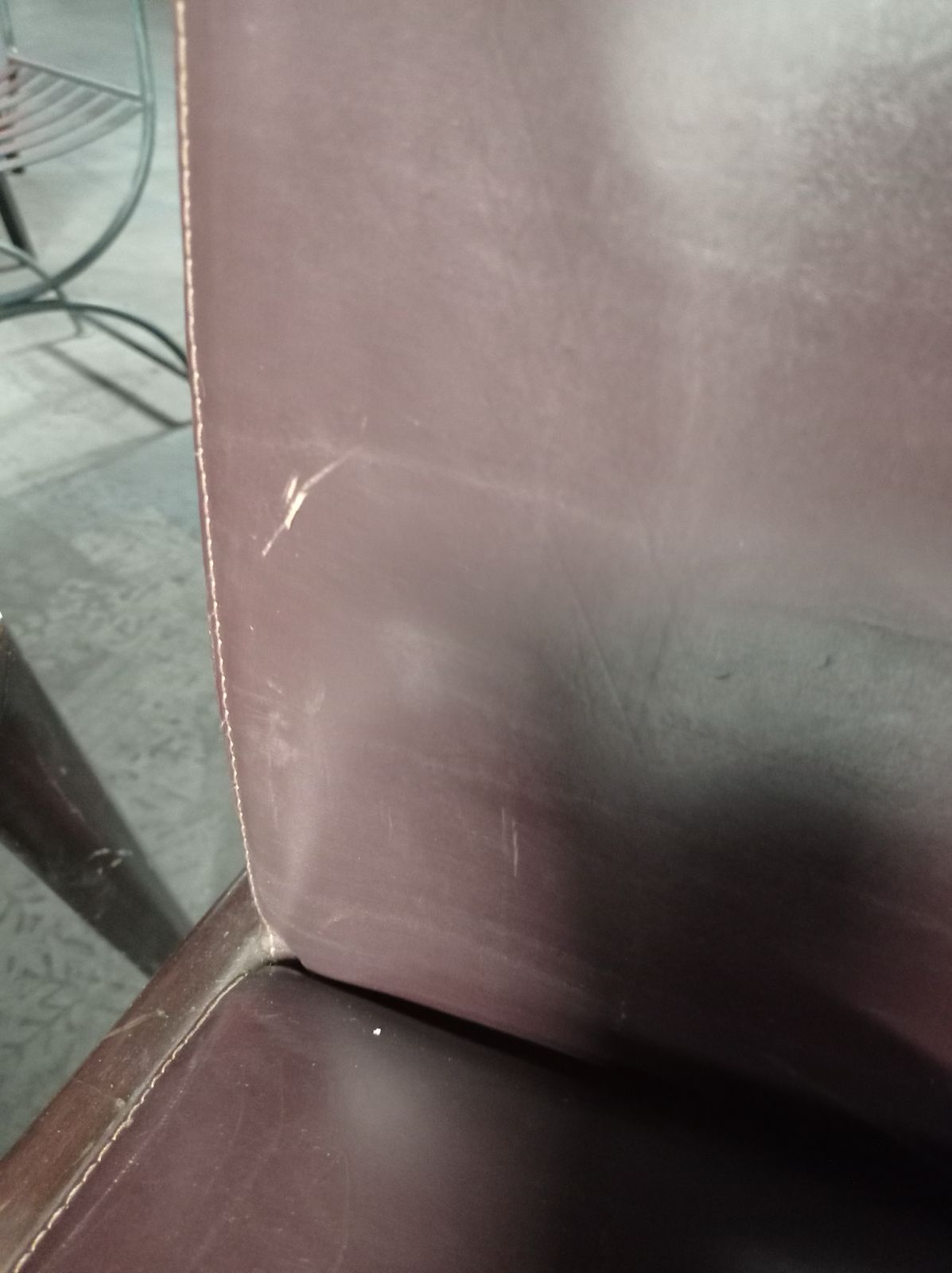 Hechas a medida 2006, réplica de una silla de la tienda de muebles en Uruguay Walmer, 4 de ellas tienen los respaldos inestables y una de ellas con el asiento suelto, desgaste natural por uso, piquetes y rayas en algunas de ellas (ver fotos), desgaste en patas.