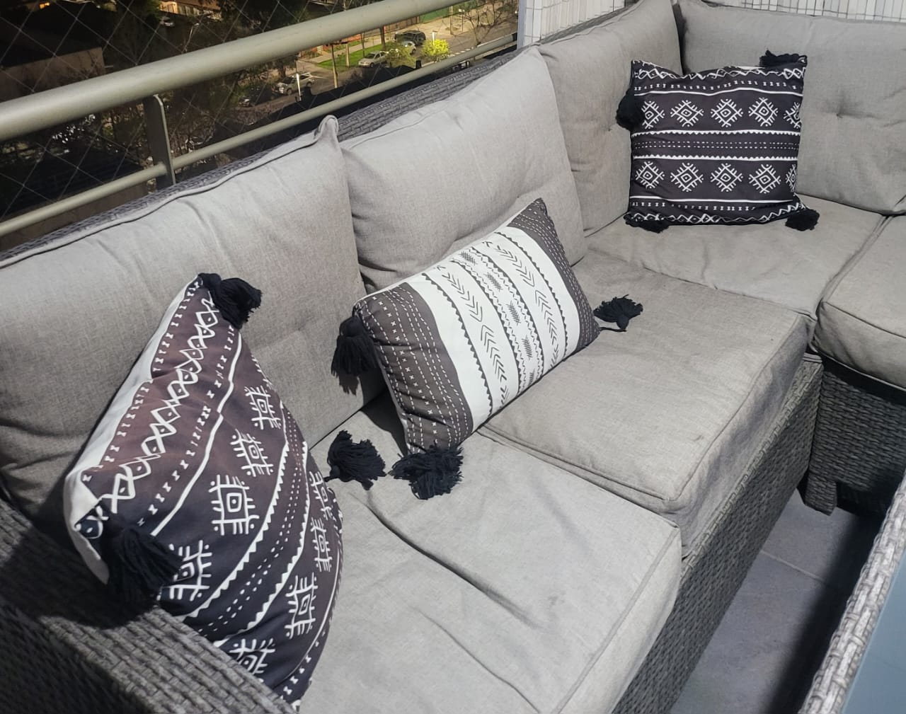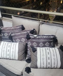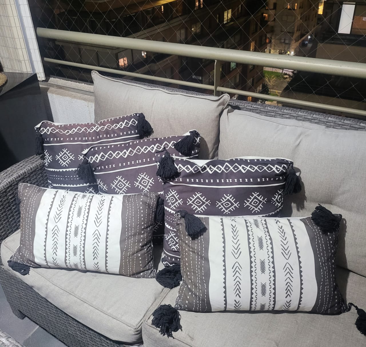 – juego de 5 fundas de cojines 40×40 y 50×30 cm (un poco desteñidas por sol)