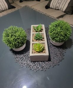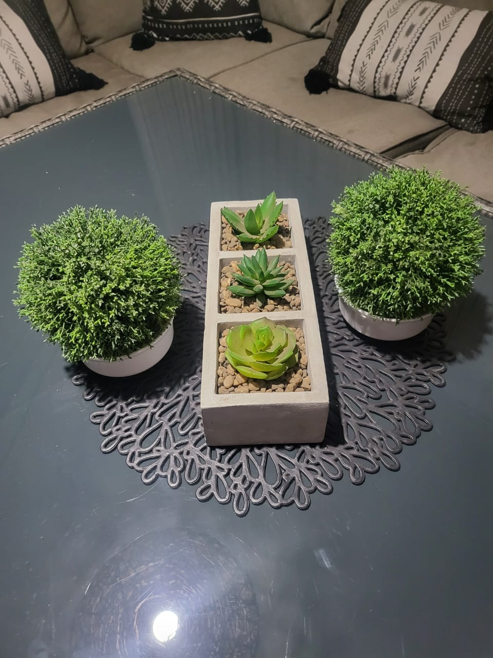 – 1 macetero triple de hormigón natural con suculentas y piedrecillas 10×10 cm