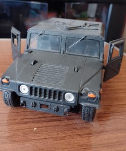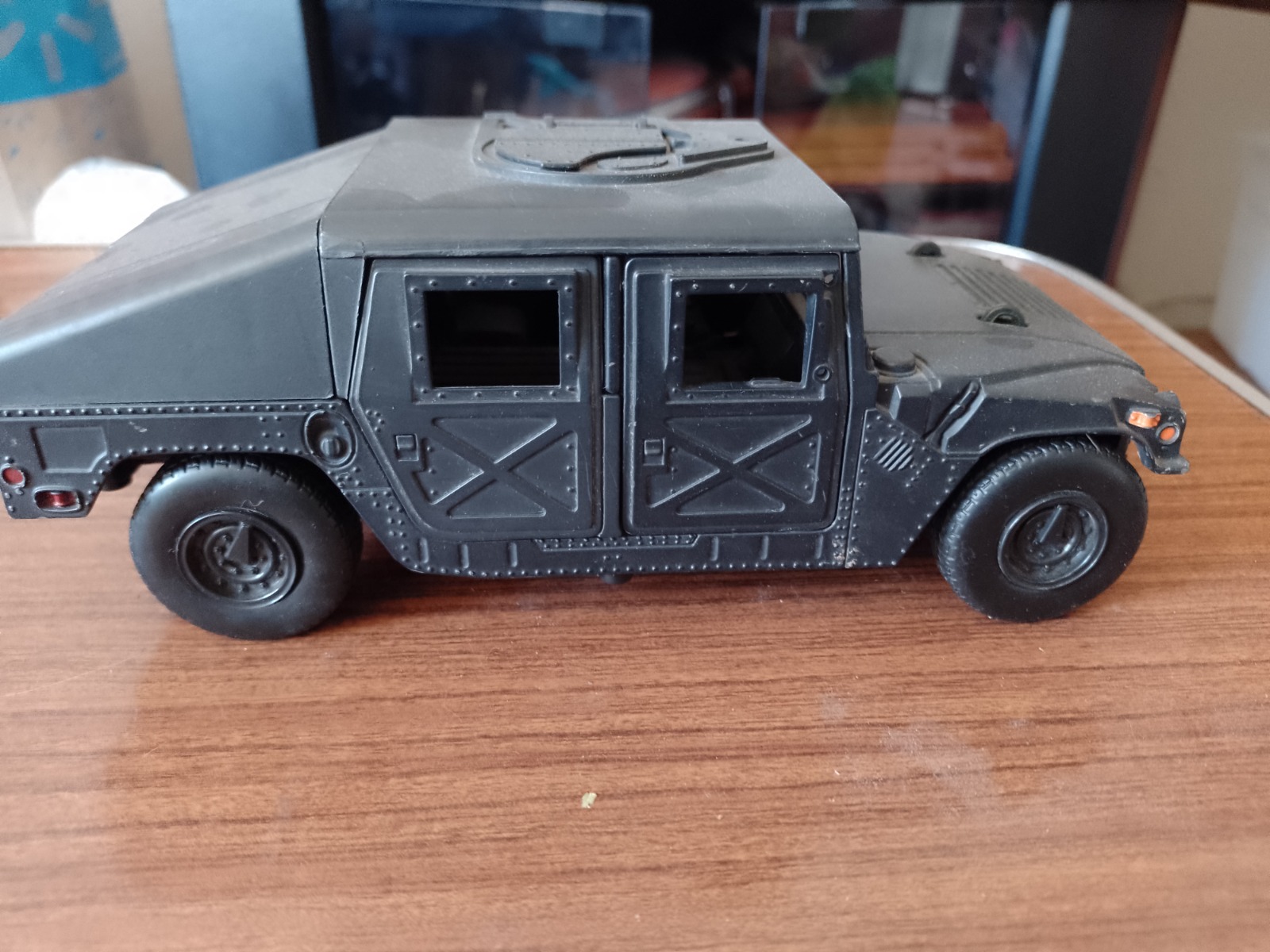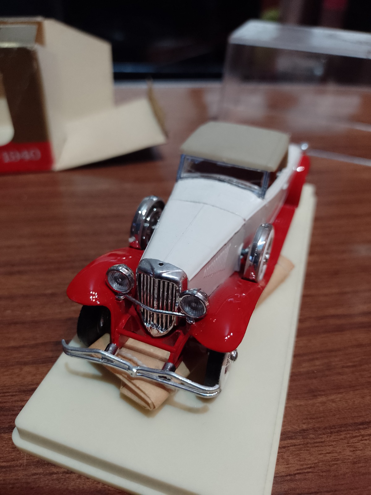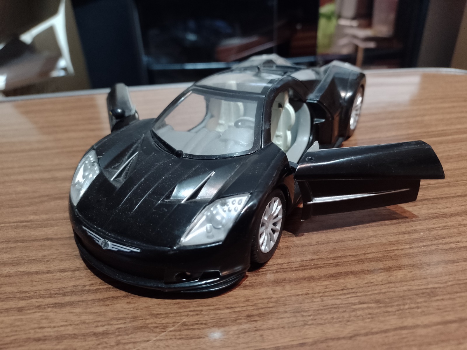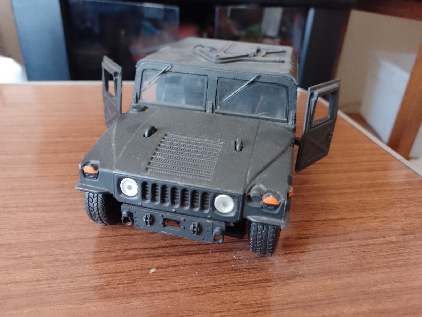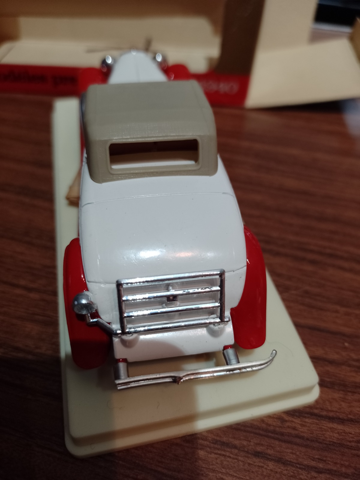Detalle le faltan los retrovisores y el auto antiguo con detalles en parachoque
