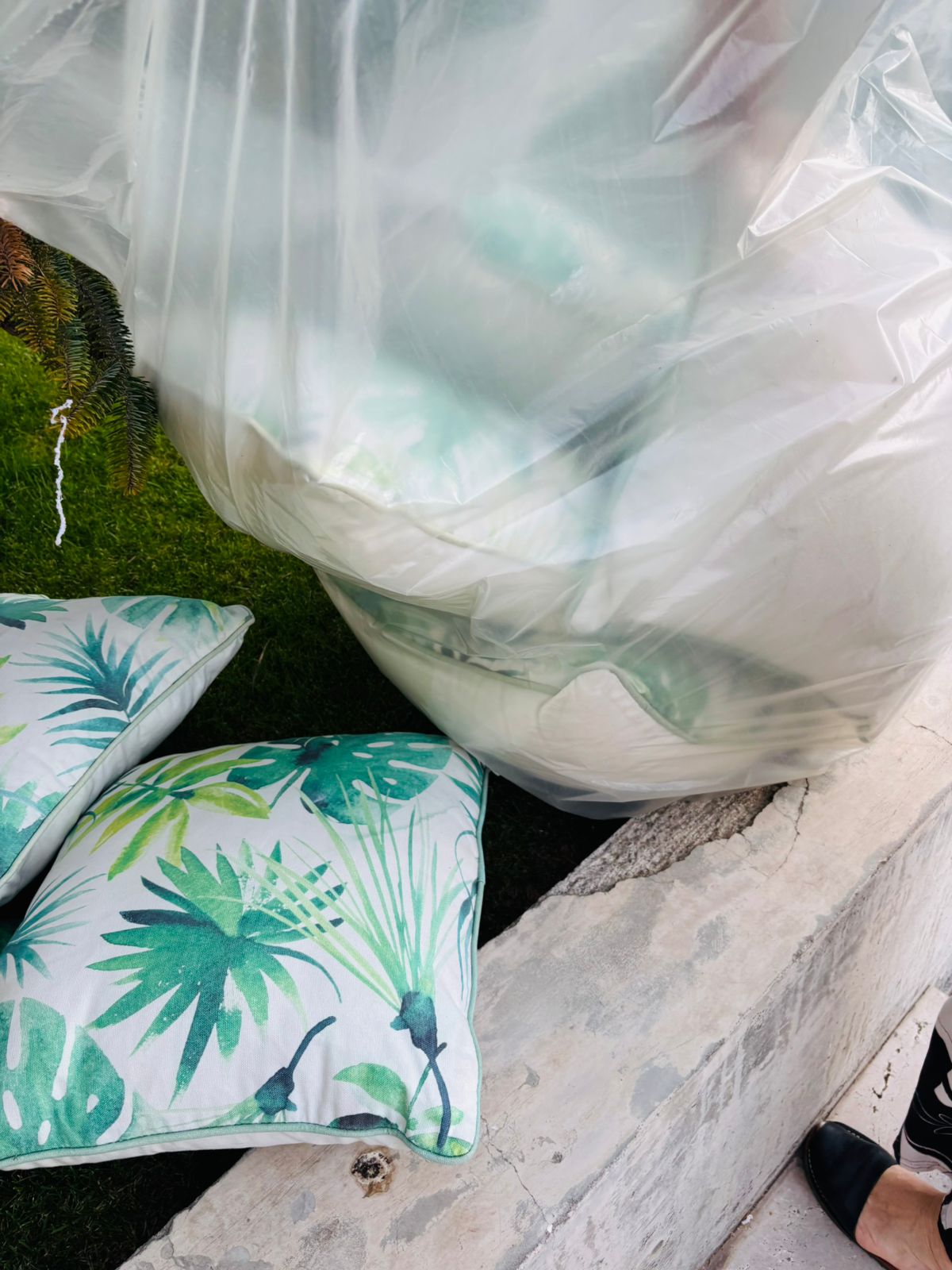 Detalle de fundas desteñidos por el sol y algunas manchas, rellenos impecables