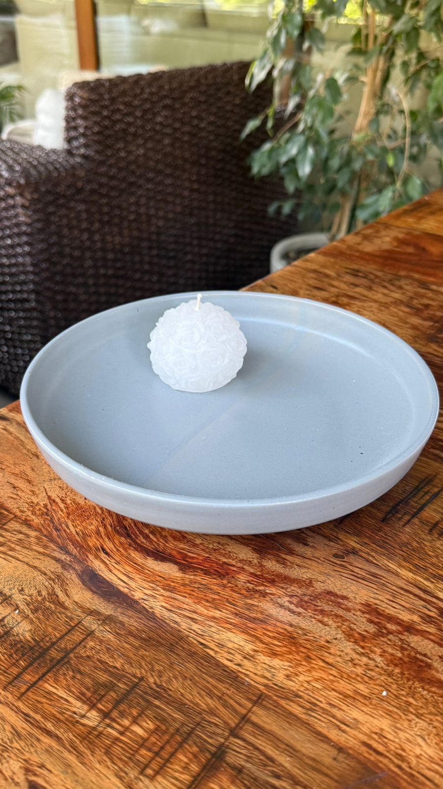 Medidas bandeja 26 cm Diam x 4 cm alto y velas 5 x 5 cm